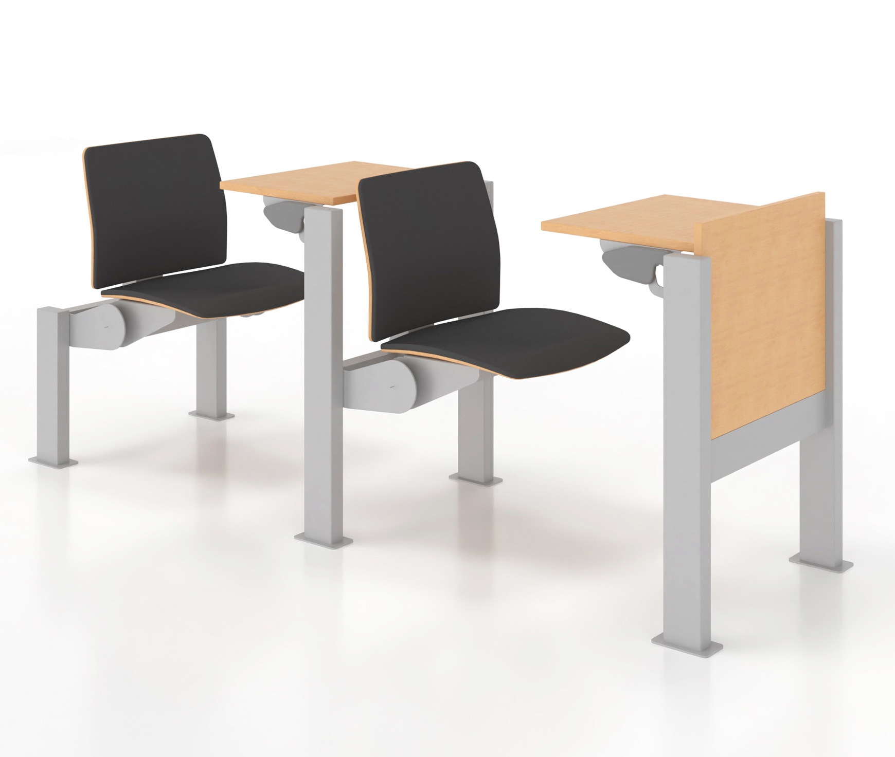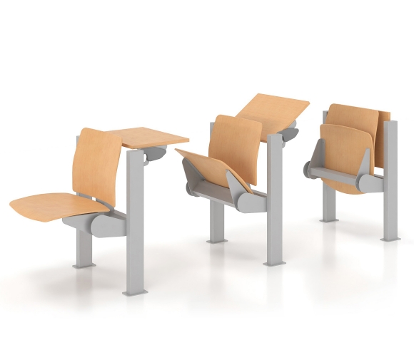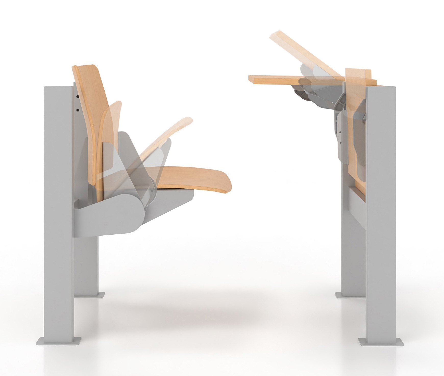 SETTINGS - The independent adjustment of seat height and work surface, along with the "Anti-panic" recline system for smooth return to the initial position, enhances ergonomics and safety in education at a high level.