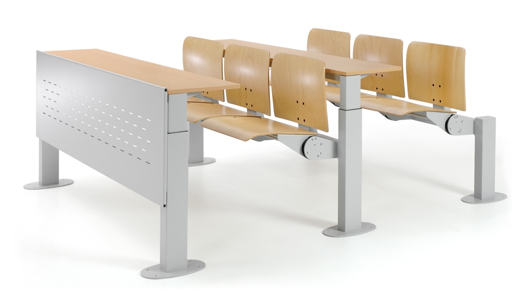 Fixed or adjustable ERGON units, available in double or triple configurations, meet even the most demanding educational settings. The seat base features an automatic “Anti-panic” return system for smooth retraction to the closed position.