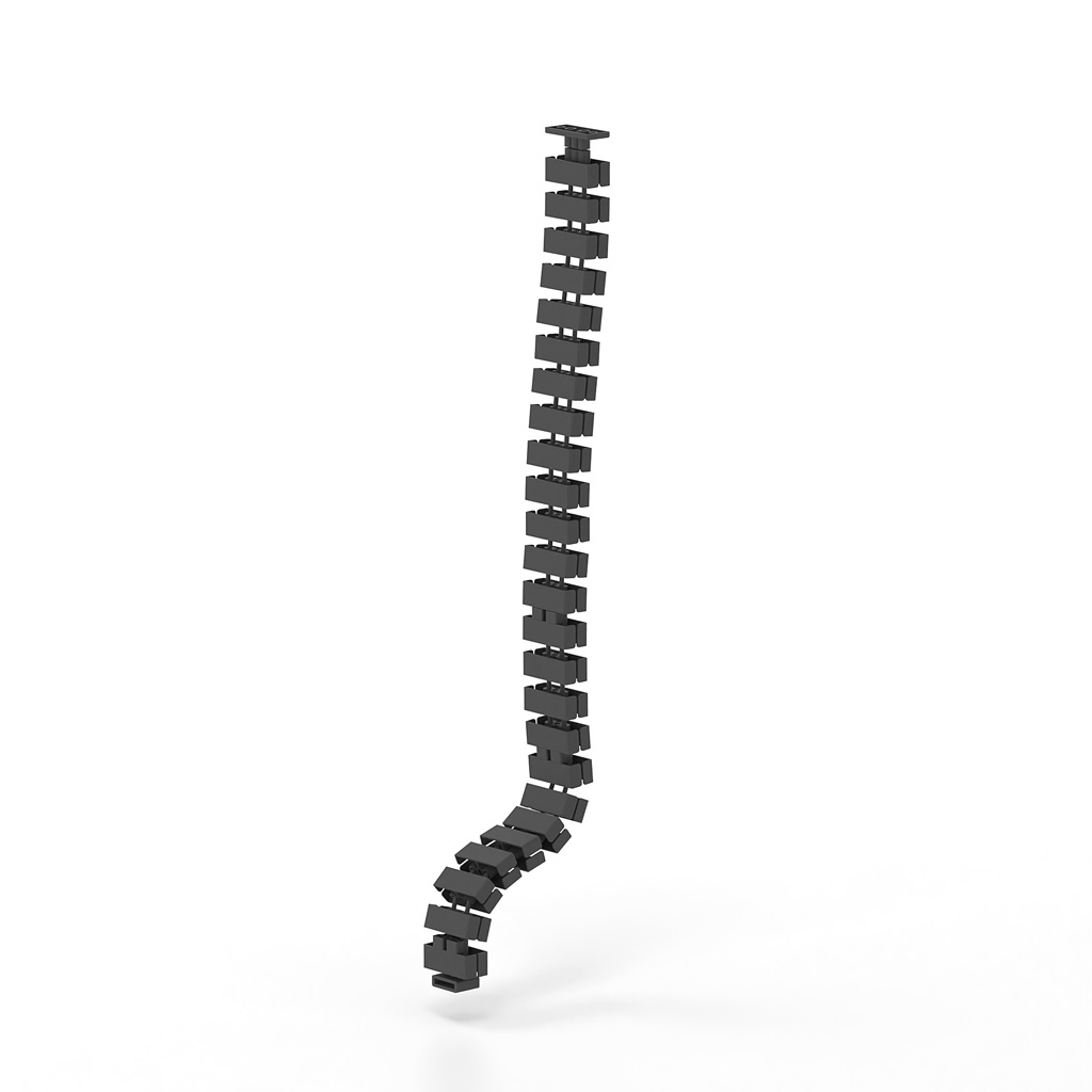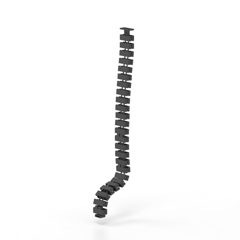 For maximum safety and order in the office, the cable spine is essential. It is available in two sizes 800 mm for the fixed desks and 130 mm for the electric ones. They are compatible with all desks and are applied under the surface of the desk using screws. It is made of thermoplastic polyamide and has a round base which is made of galvanized steel sheet 15 mm thick, covered with plastic.