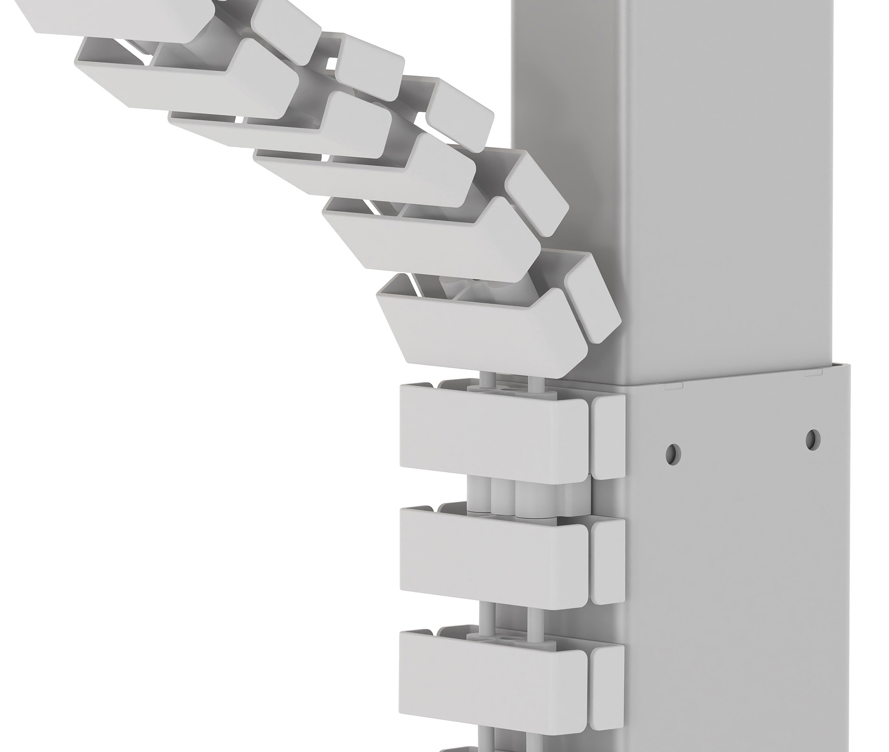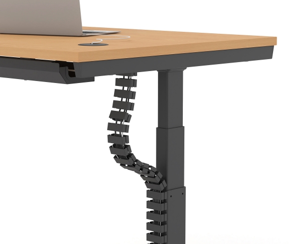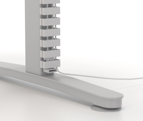 For maximum safety and order in the office, the cable spine is essential. It is available in two sizes 800 mm for the fixed desks and 130 mm for the electric ones. They are compatible with all desks and are applied under the surface of the desk using screws. It is made of thermoplastic polyamide and has a round base which is made of galvanized steel sheet 15 mm thick, covered with plastic.