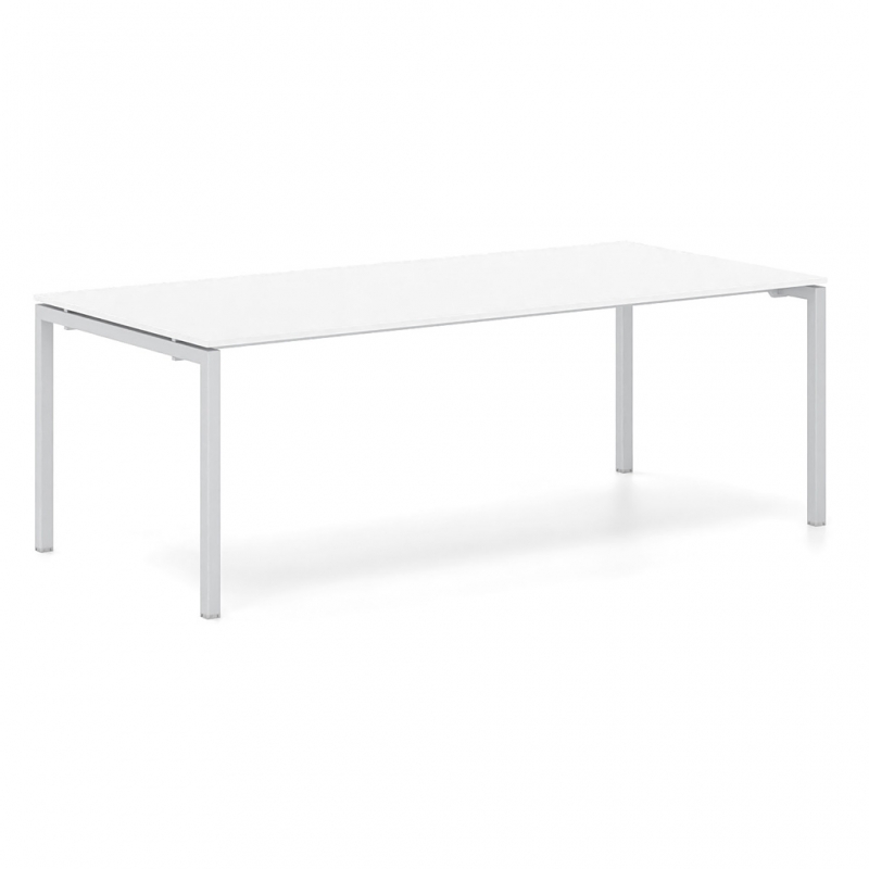 The NEO series is characterized by simplicity and modern design. It is ideal for spaces that require a modern aesthetic approach. It impresses with its simple, clear design language as well as its high quality. The profile of the series is completed by the optically floating worktop above the metal support frame as well as the rectangular frame supports. With the possibility of configuration in color and size, the NEO conference desks are ideally adapted to any interior space.