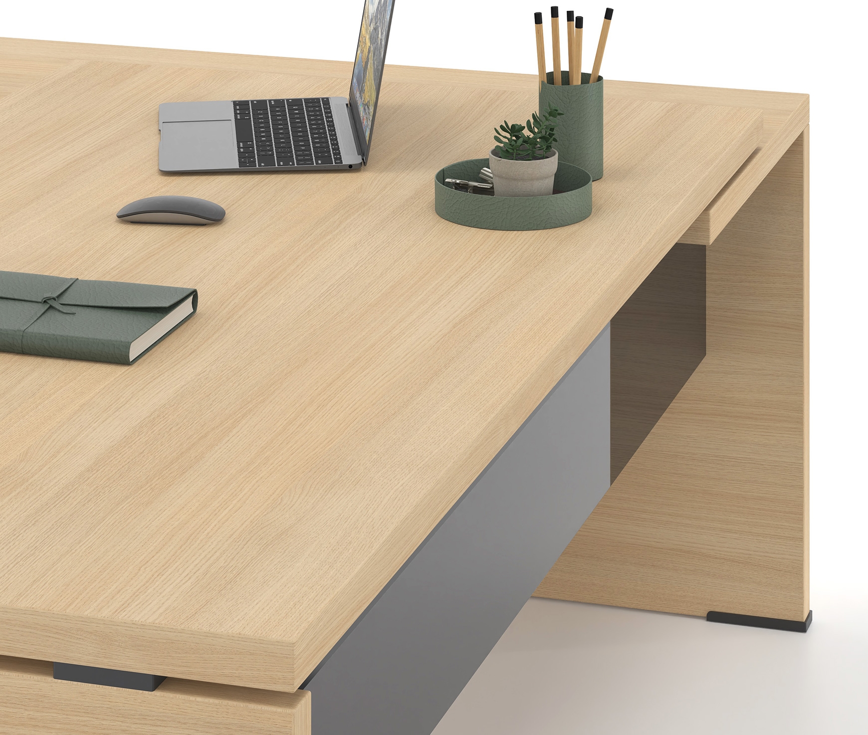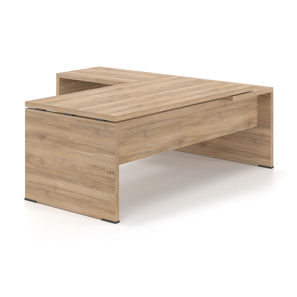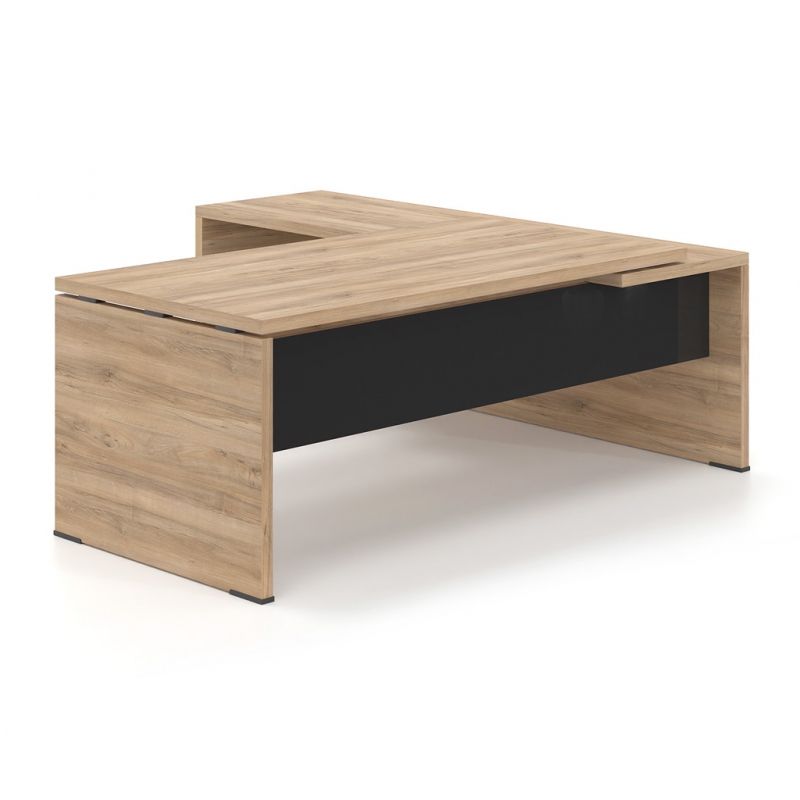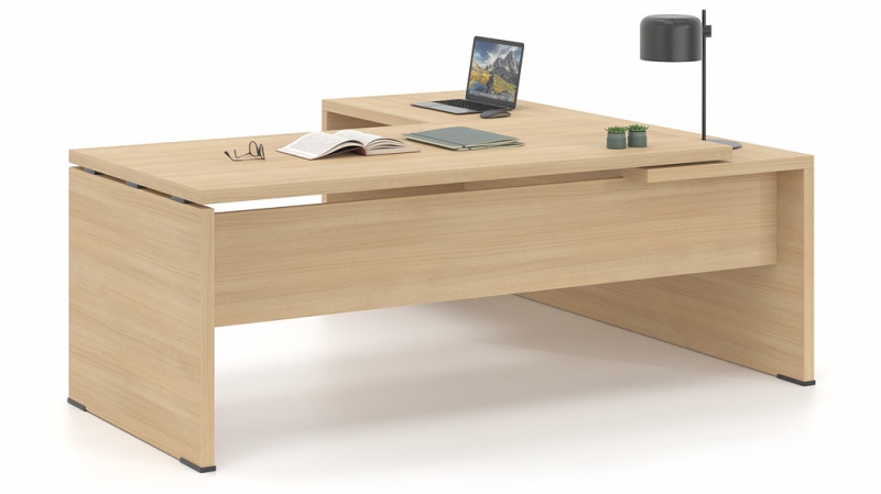 HIGH AESTHETICS – The different combinations of materials create an office of high aesthetics. The choice of front in melamine chipboard, glass or metal combined with the optional glass surface of the extension give a modern touch and make the LYSIS PLUS executive desk irresistible