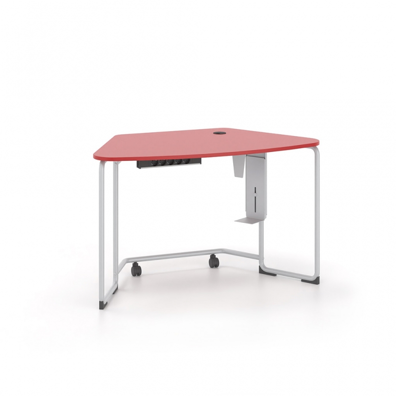 OPTIONAL EQUIPMENT – The desk can optionally be equipped with a metal or fabric partition, 5-position multi-socket, cable harness and adjustable PC stand