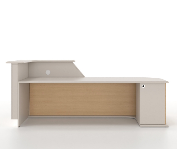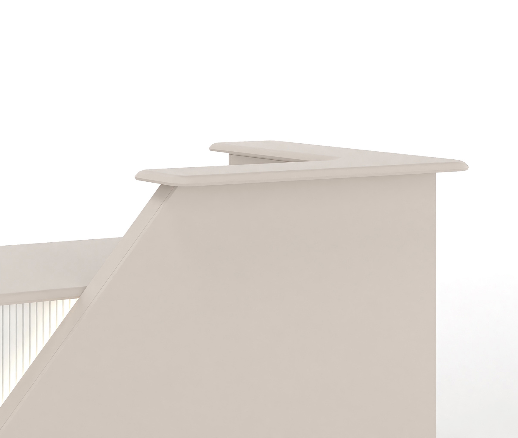 The Calypso reception desk has been designed to blend seamlessly into contemporary architectural compositions of high aesthetic value. Its geometry balances linearity with curvature, adding both dynamism and clarity to the reception space.