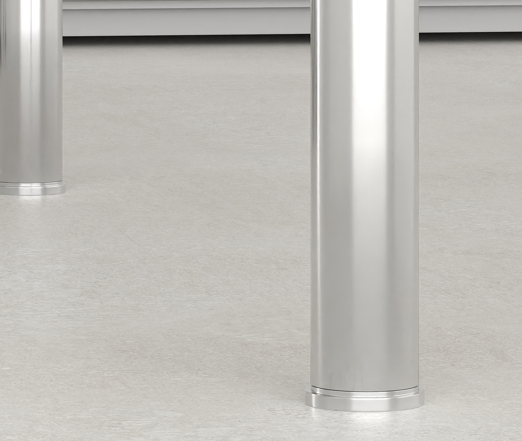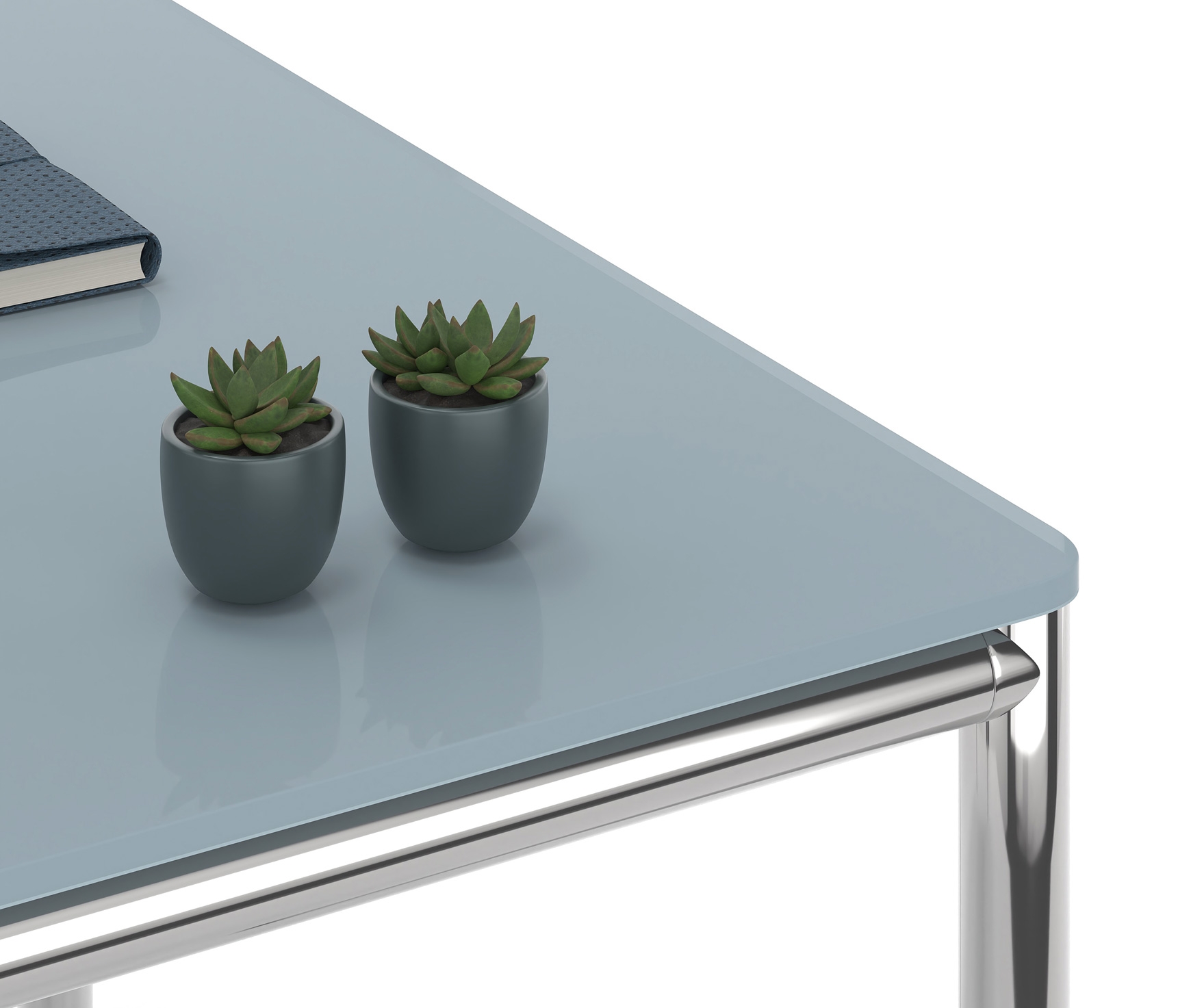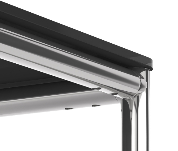 Minimal high-tech construction, elegant presence in the space and functionality characterize the Slim executive office. The above elements in combination with the elegant inox metal frame and the extra clear securit glass, make this particular option essential for every executive aiming for success.