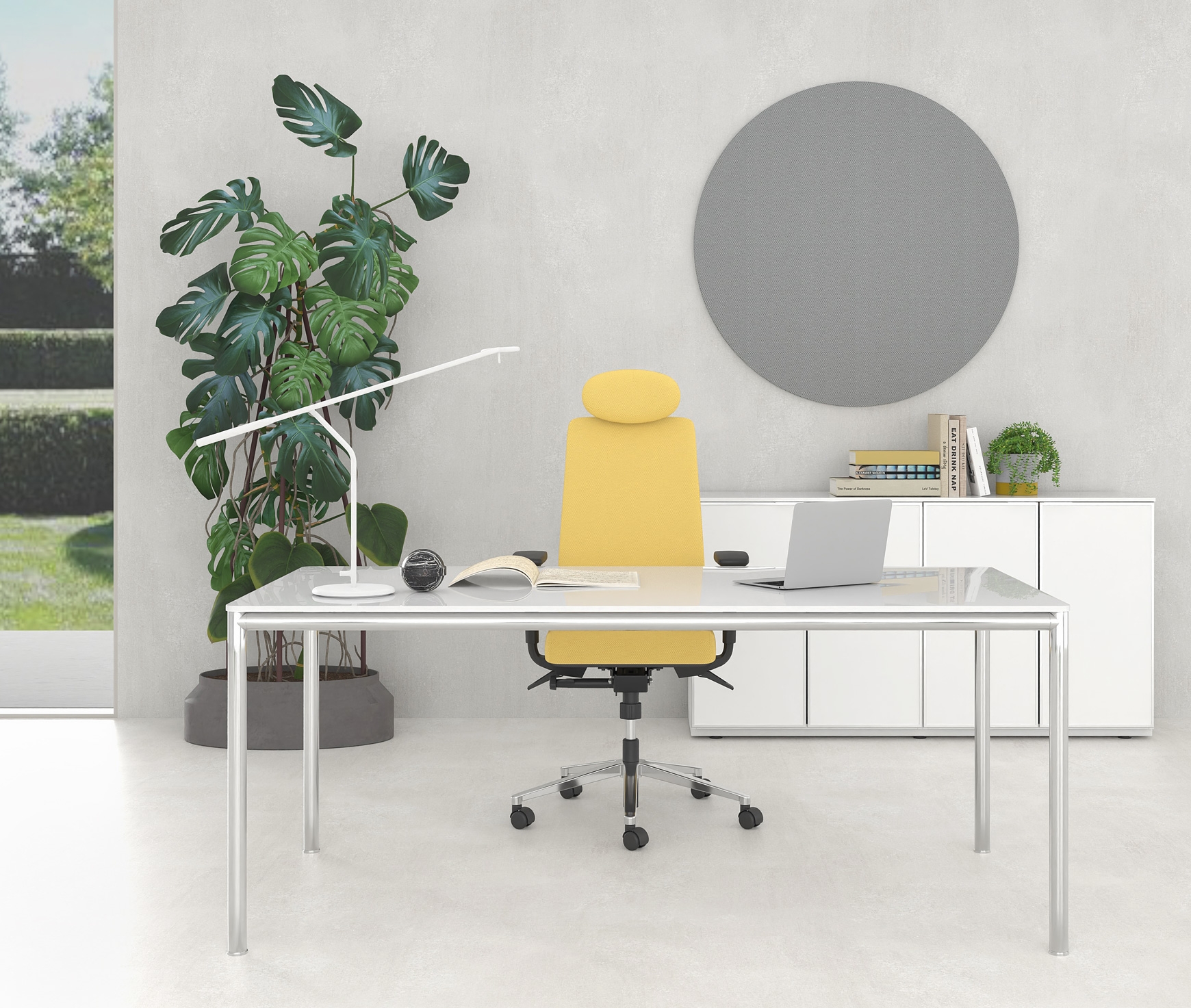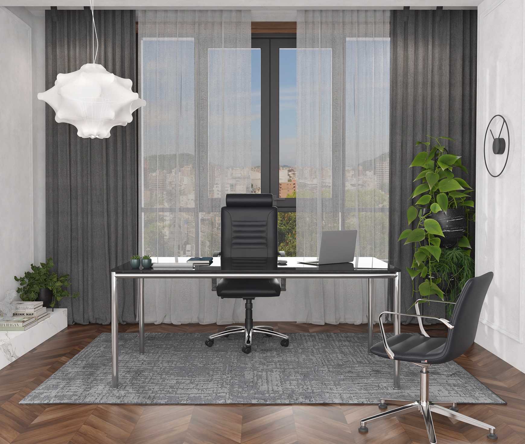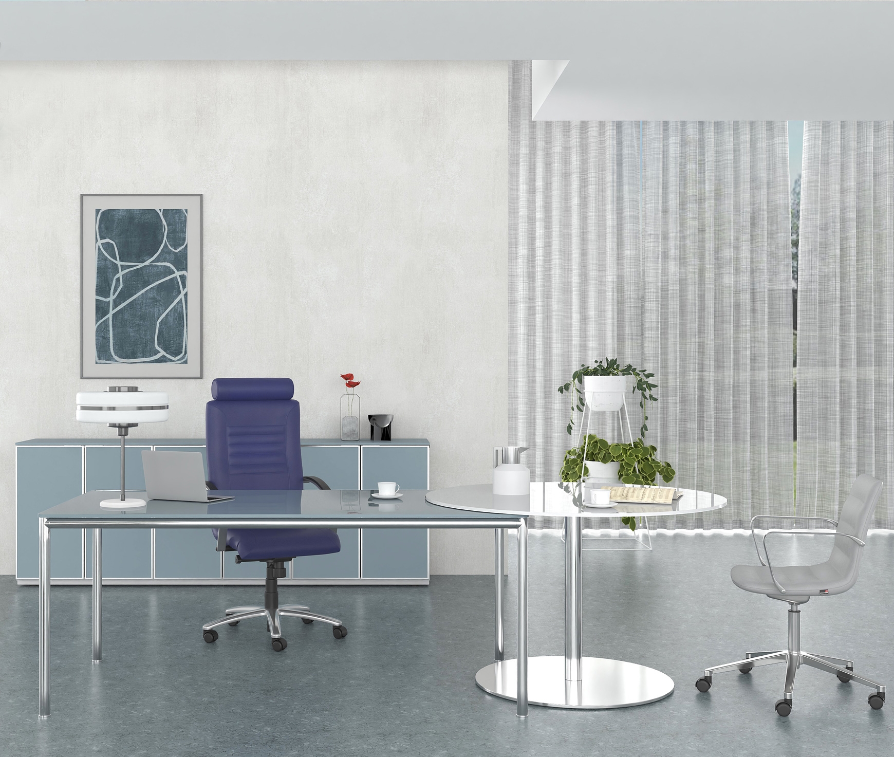 The SLIM series is a modern and innovative proposal for your executive office. The lacquered glass with its gloss together with the inox legs make a perfect combination for a modern and elegant executive desk.