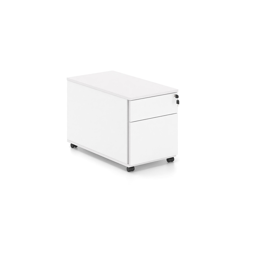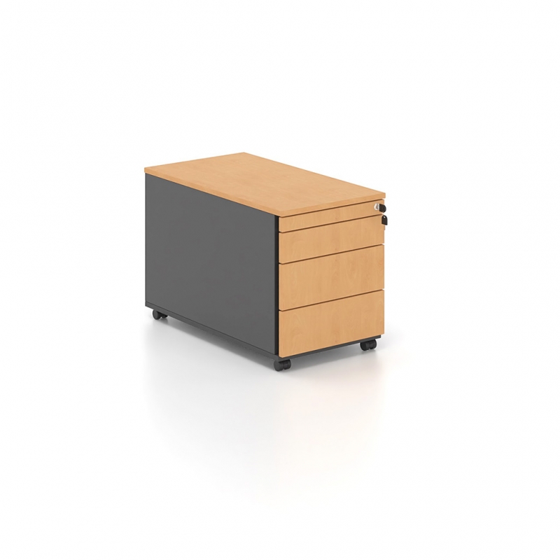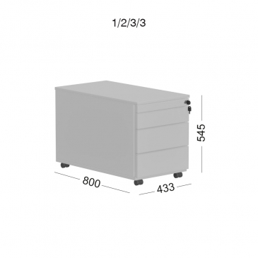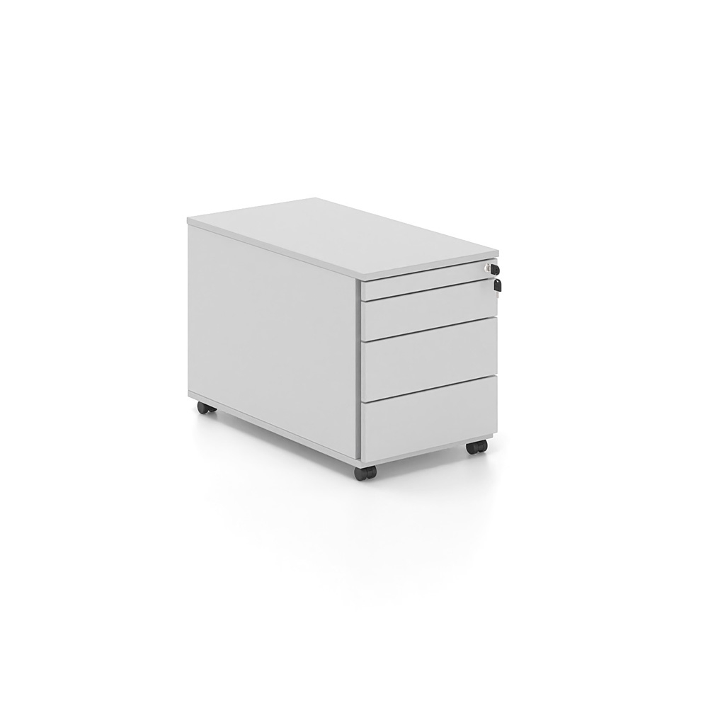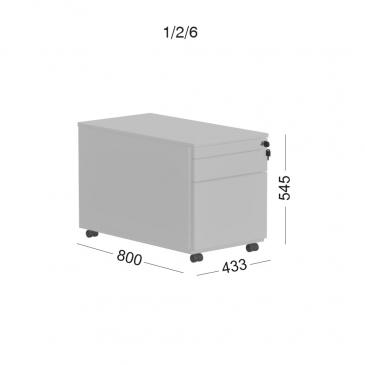 Pedestals made of melamine chipboard of high aesthetics and functionality. They are available in two depths of 60 cm and 80 cm. The pedestals are available on castors or fixed with sliders. In the case of castors, there is the option of adding wheels with brakes. They have metal drawers with hidden sliding guides and full (100%) opening, an antitilt system (does not allow opening more than one drawer), as well as a "soft close" closing damping system. All pedestals are equipped with safety locks. At the same time, the drawers have a suitable configuration so that it is possible to add transverse partition walls with a variable position for better organization of the storage space. They are available in a wide variety of colors.