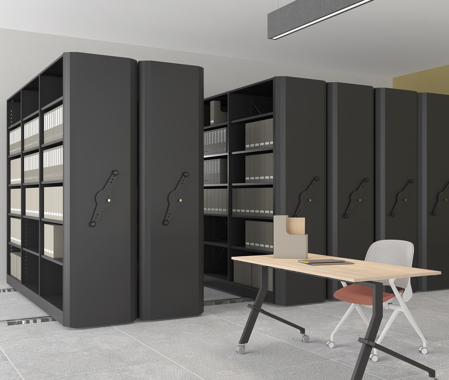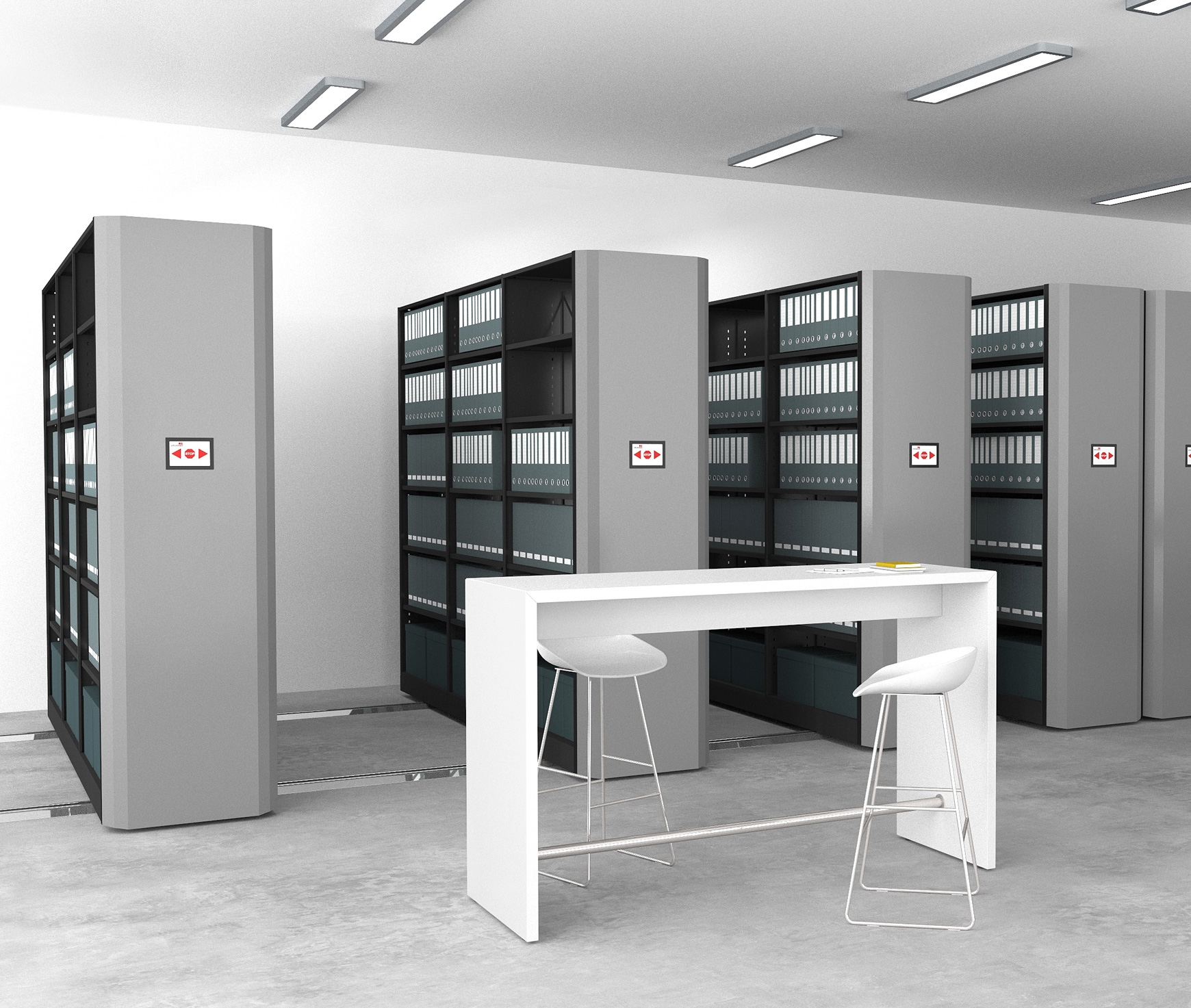 FUNCTIONALITY - The archive units are equipped with central locking as well as with an independent locking system for maximum safety when accessing the corridors