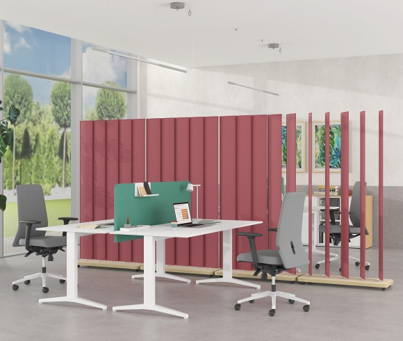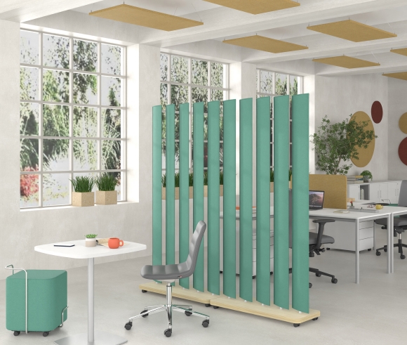 An original and modern proposal is the ELIKA mobile sound-absorbing partition. It not only gives the sense of isolation to the space but upgrades it acoustically and stylistically, giving an air of rejuvenation and tranquility