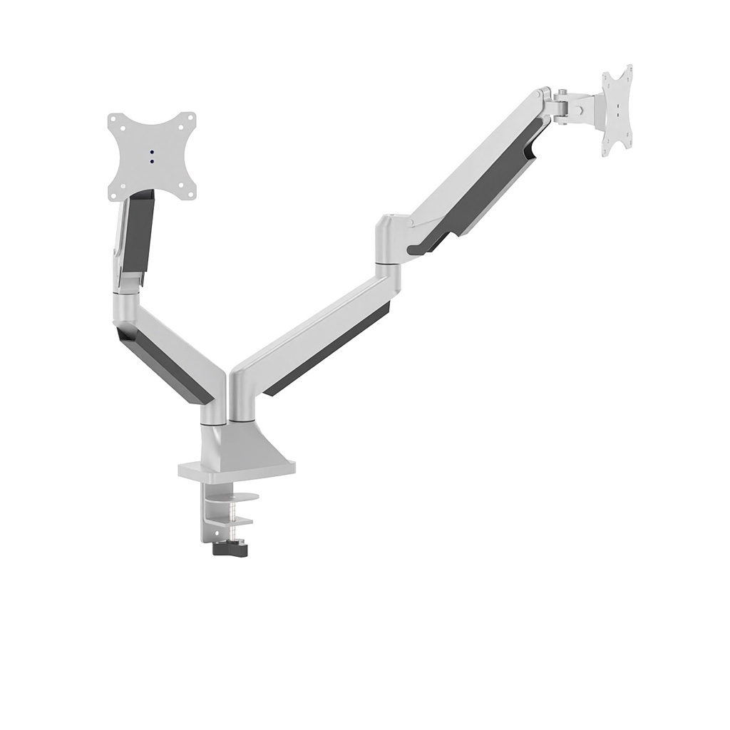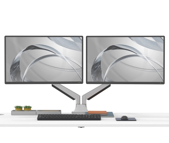The LIBERTY N monitor support arm was designed and works based on the rules of ergonomics so that the computer user can place the screen at the right distance and angle of view from their eyes, depending on their body type and the position in which they work. Places quickly and easily on the edge of the desk surface. Applies to monitors that meet VESA type specifications 75mm x 75mm & 100mm x 100mm. Available single for mounting one screen, as well as double for mounting 2 screens with simultaneous height adjustment and independent rotations. Available single for mounting one screen, as well as double for mounting 2 screens with simultaneous height adjustment and independent rotations. Each arm has four twist locks. Each arm carries a gas piston for perfect counterweight. Weight per screen up to 9 kg.