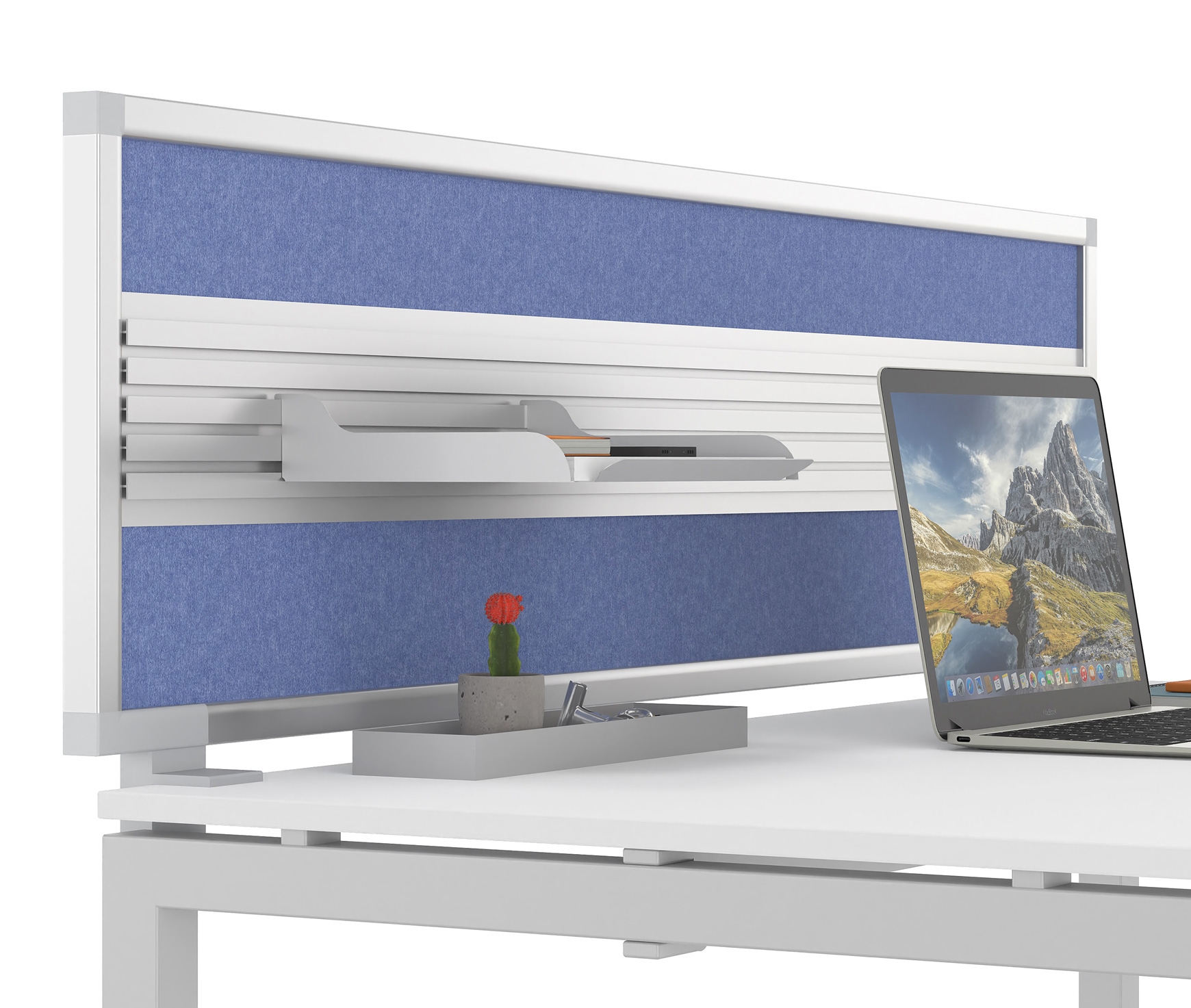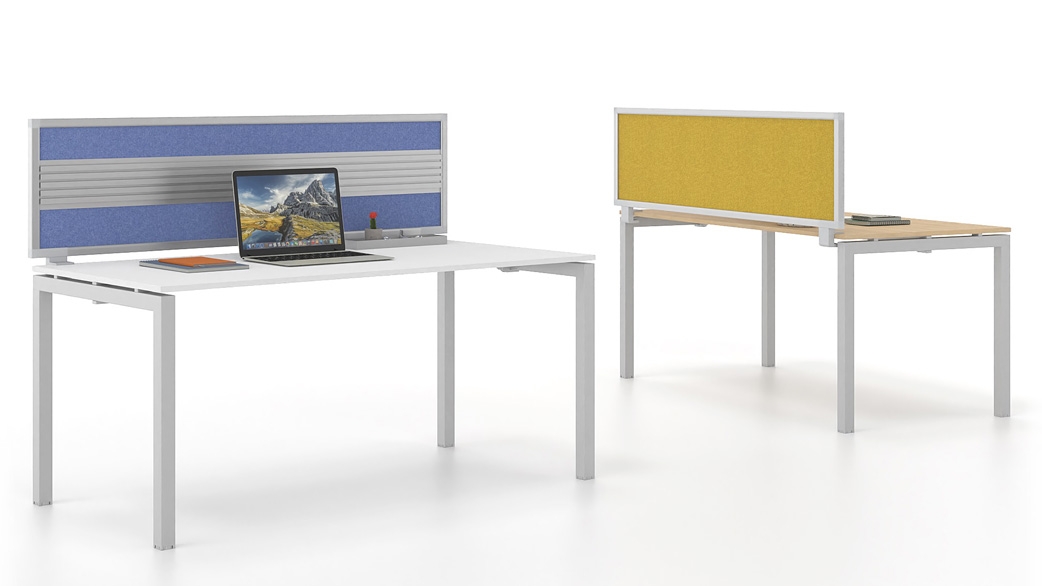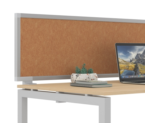 All panels feature a perimeter frame made of natural anodized aluminum profiles, allowing the integration and support of desk accessories.