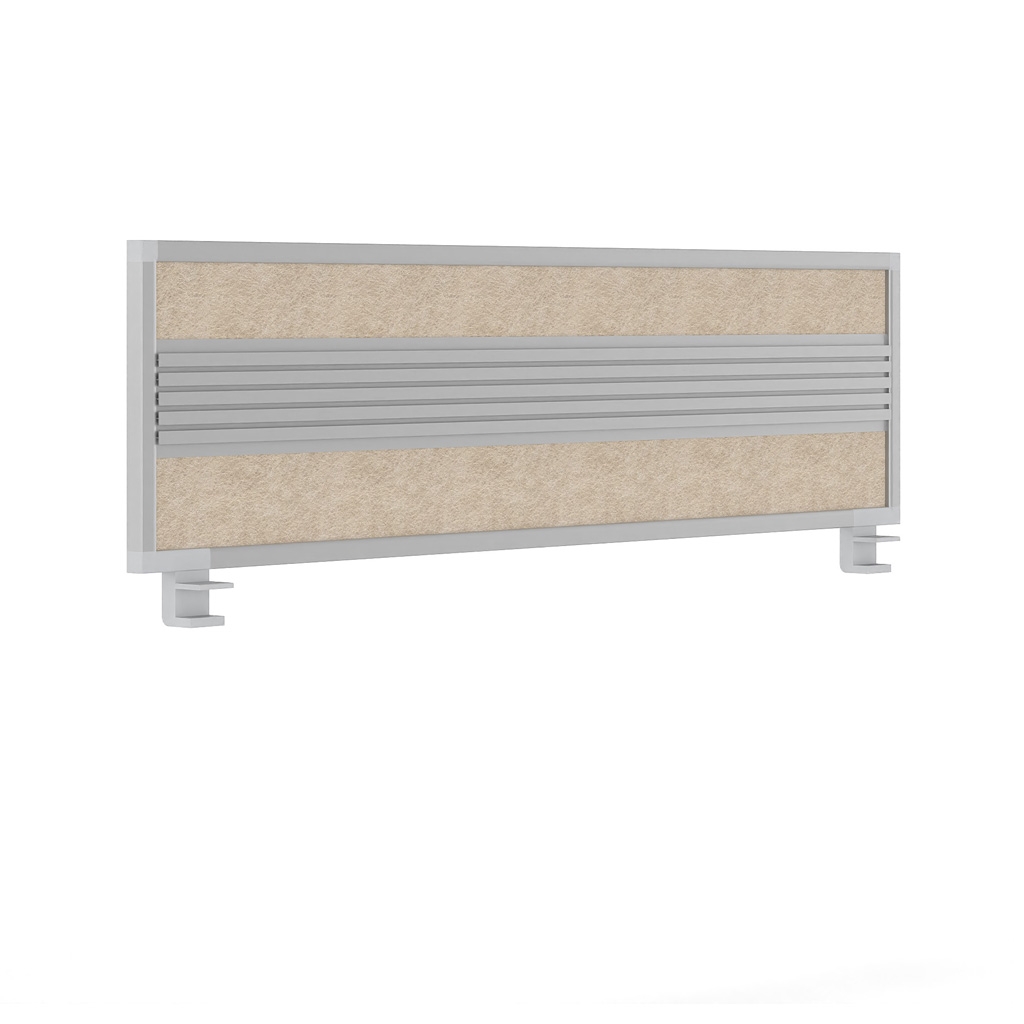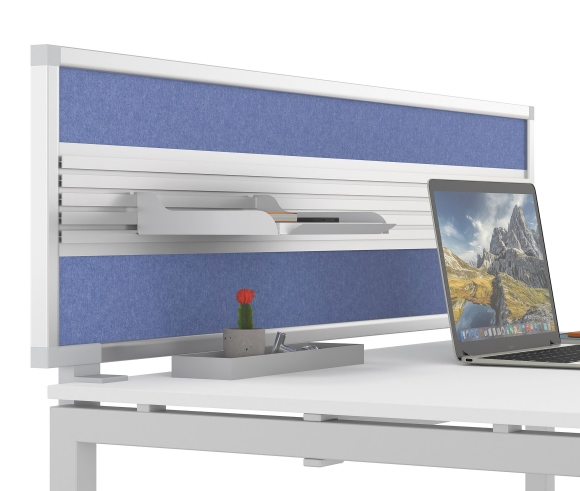 ERGONOMICS – Thanks to the perimeter aluminum frame and specially designed mounting connectors, FLEXI PET screens are easily installed without permanently altering the desk surface. The option to add an internal aluminum rail allows the attachment of desk accessories (e.g. organizers, lighting, pinboards), enhancing ergonomics and workstation personalization