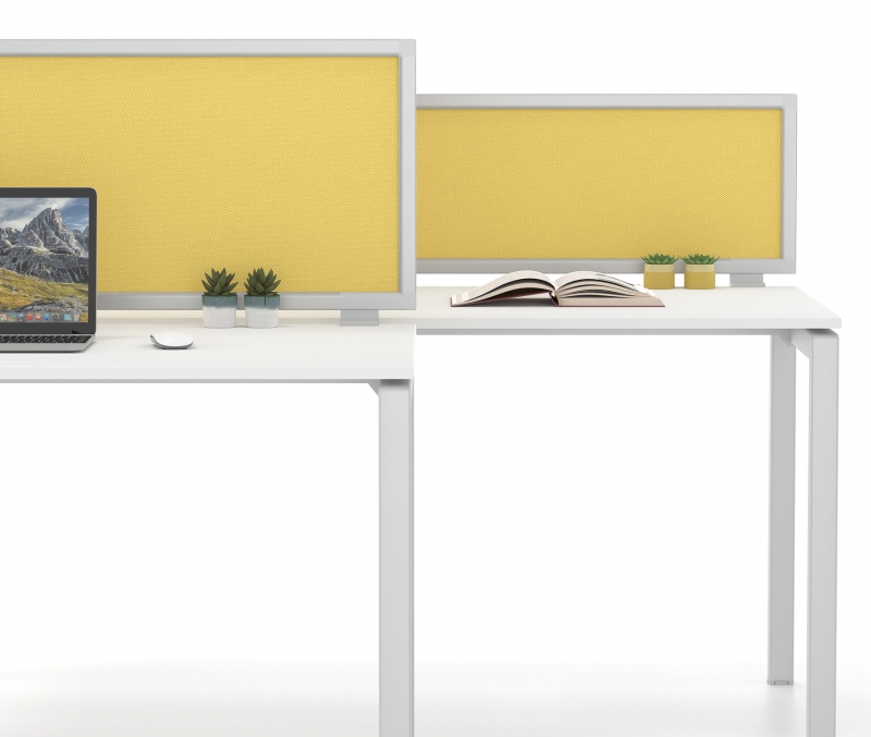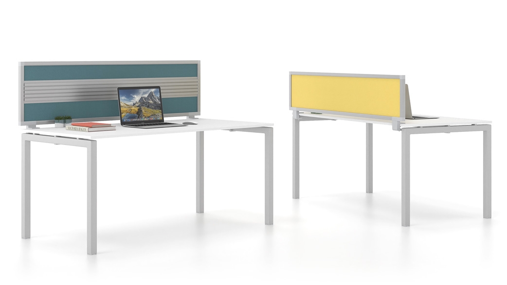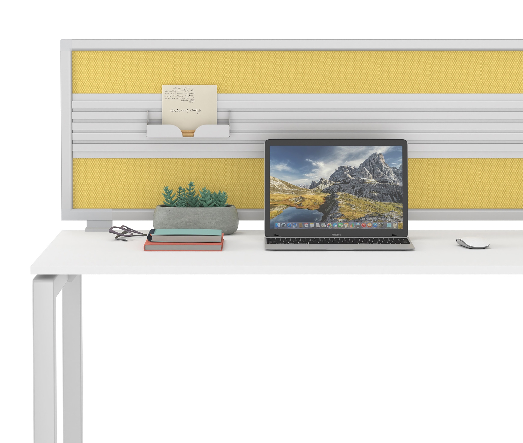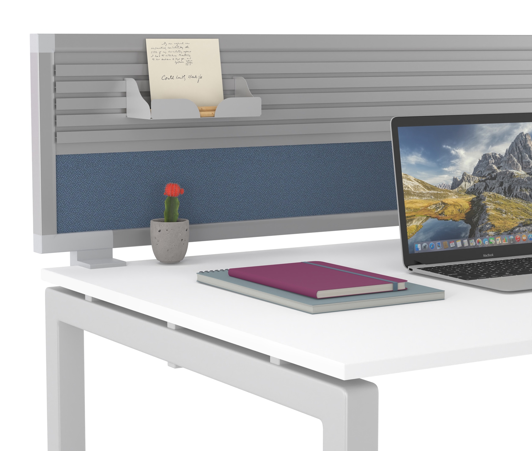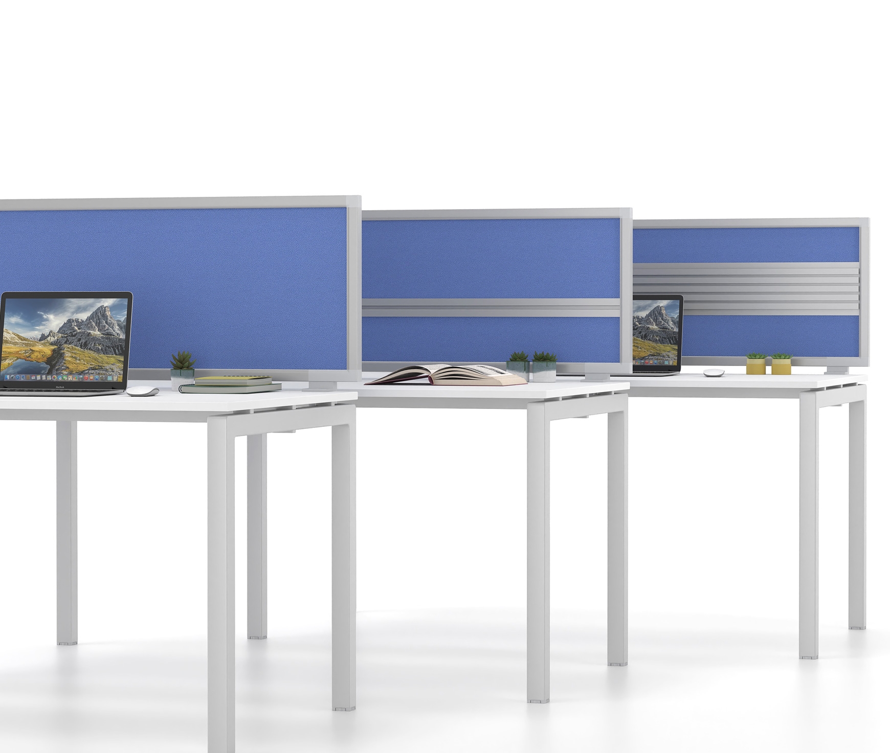 Flexi tabletop partitions designed with an emphasis on aesthetics provide solutions for the configuration of the space with many possibilities for composition of dimensions, materials and colors.