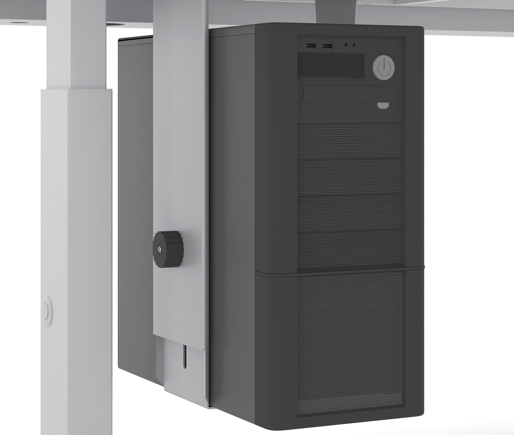 For maximum ergonomics and order in the office, the hanging pc base is a must. With the possibility of height and width adjustment, it is easily adapted to the required needs. It has non-slip, protective surfaces to protect the equipment.