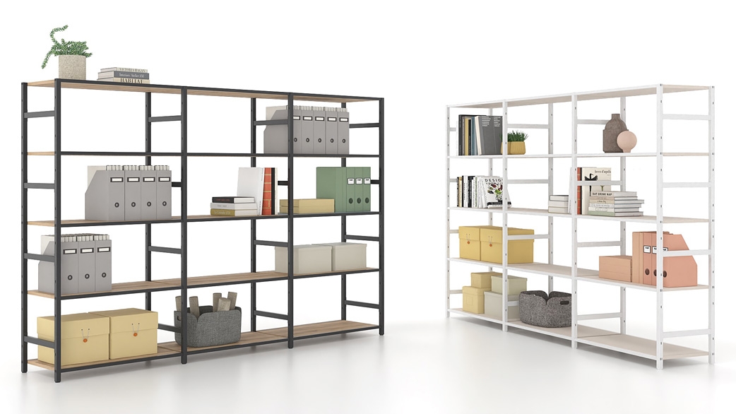 The modular shelving system SYNTHEKA® is a modern solution for the workplace, designed to foster collaboration. Its innovative modular construction (International Patent by DROMEAS) allows for easy, tool-free assembly while enabling effortless customization and expansion. The sleek, minimalist design complements any workspace.