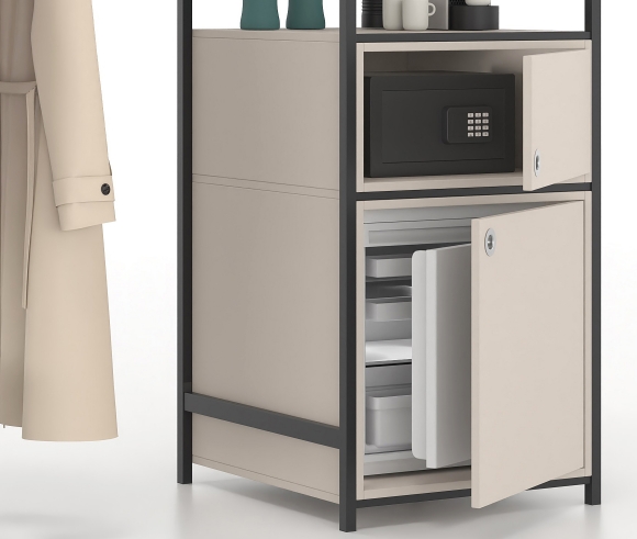 Its open-frame design, free from cross-braces and back panels, ensures dual-sided accessibility, making it easy to integrate additional elements and pre-configured units. This flexibility allows it to serve a variety of functions and streamline daily workflows.