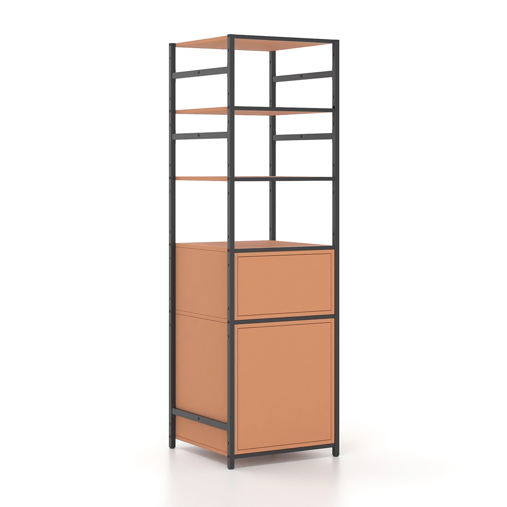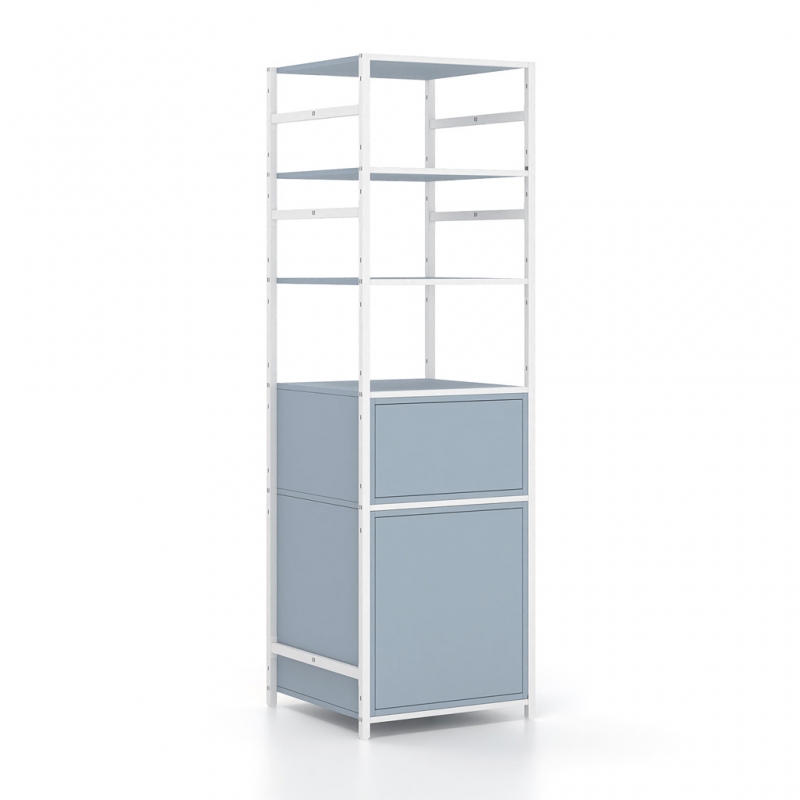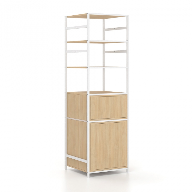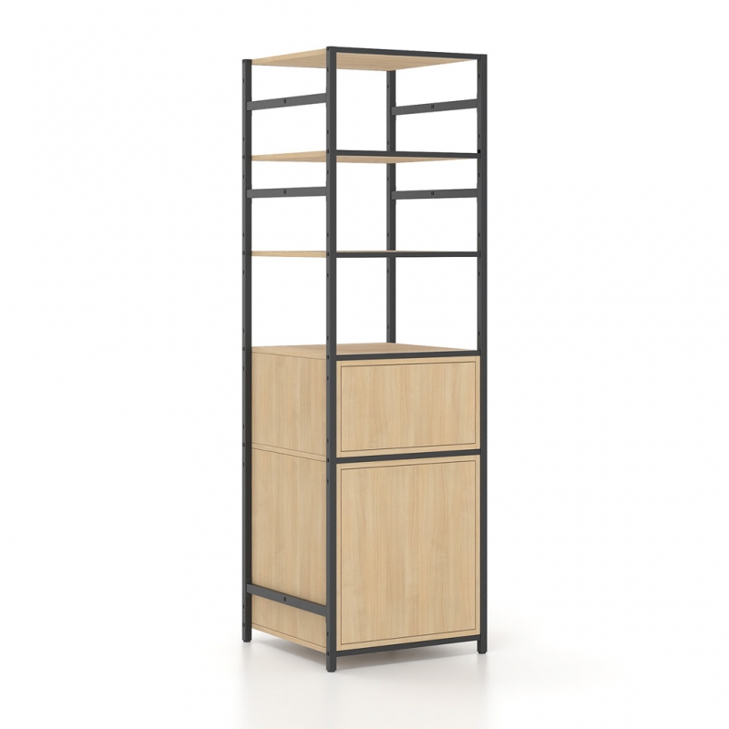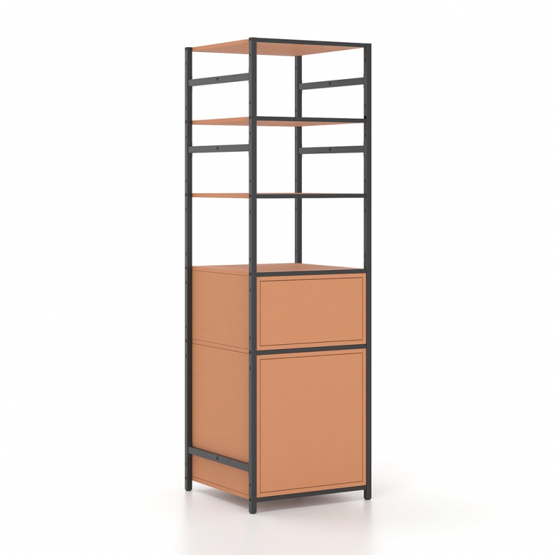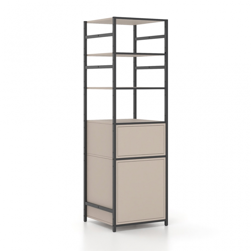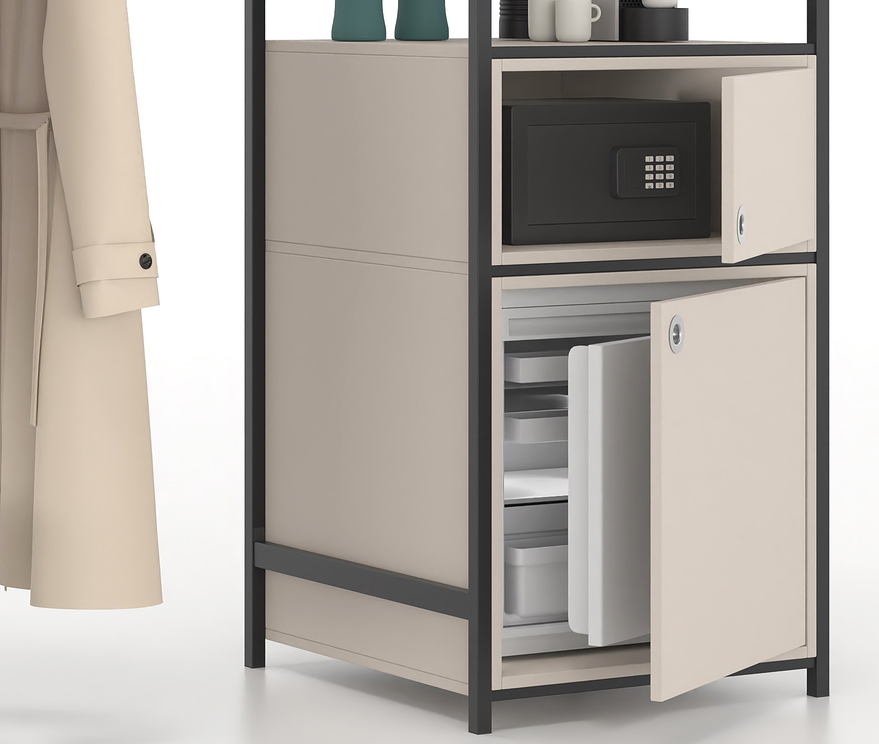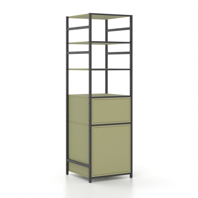The modular shelving system SYNTHEKA® is a modern solution for the workplace, designed to foster collaboration. Its innovative modular construction (International Patent by DROMEAS) allows for easy, tool-free assembly while enabling effortless customization and expansion. The sleek, minimalist design complements any workspace.