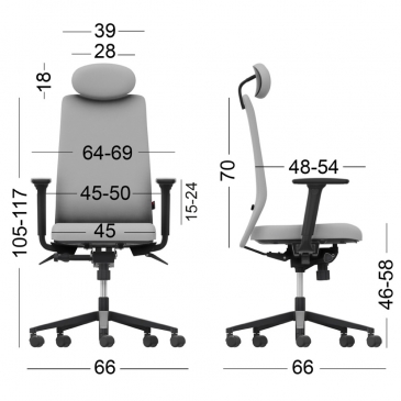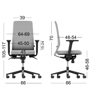 ADJUSTMENTS – The synchronized, smooth and controlled seat-back movement, thanks to the antipanic synchro mechanism, combined with the possibility of locking in 5 different positions, promotes ergonomics during work. Back pressure resistance for balanced reclining, adjustable according to personal needs. The adjustable lumbar support with a width of 70 mm, combined with the seat depth adjustment in 7 positions, allow even better adaptation of the chair to the user's body type. The 4D adjustable armrests feature ultra-soft, skin-friendly padding