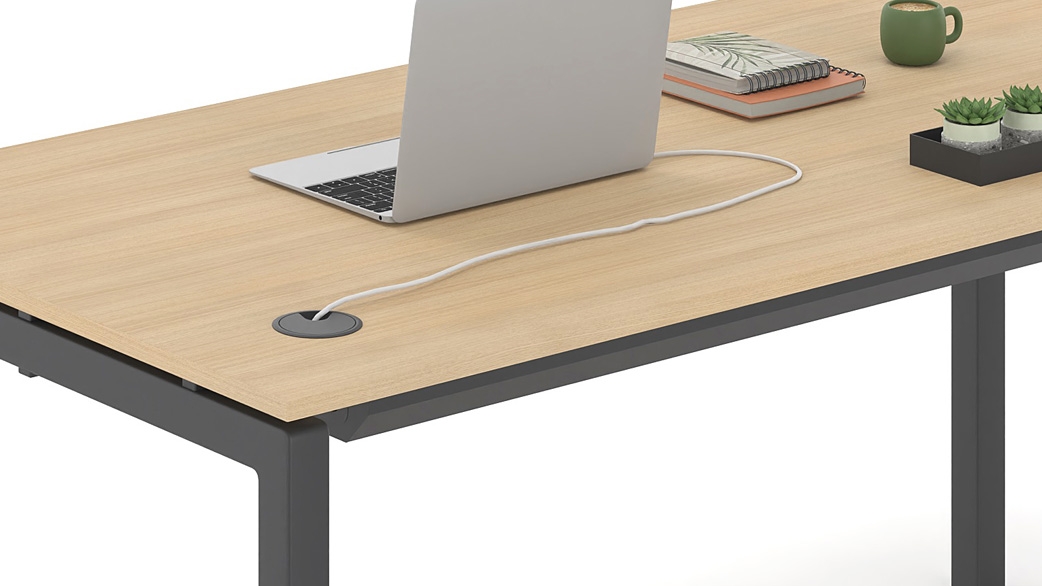 The metal cable entry grommet is placed in a suitable 79 mm diameter hole in the work surface. It is particularly useful for securely connecting devices as well as hiding cables