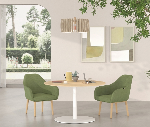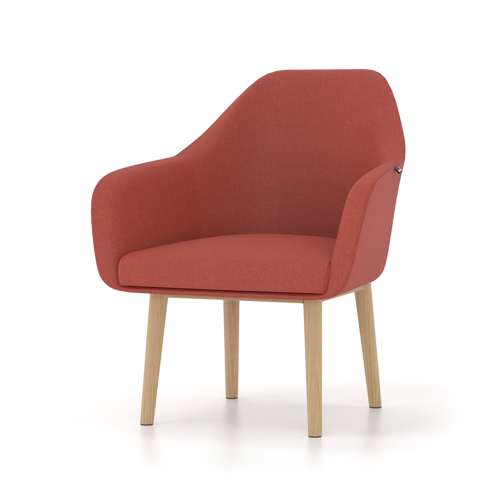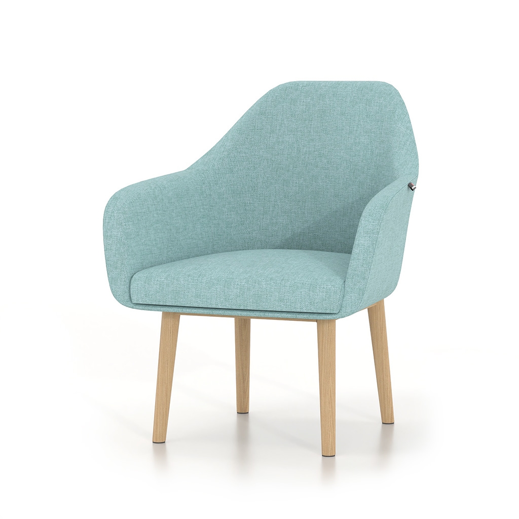 A modern and comfortable solution for meeting rooms, lounges, and waiting areas is the CALMA visitor chair. Designed with curves that embrace the body and a comfortable seat cushion, it offers a combination of aesthetics and functionality. The variety of colors and fabrics allows adaptation to any contemporary professional environment. The metal frame with oak finish completes the design, providing stability and subtle elegance.