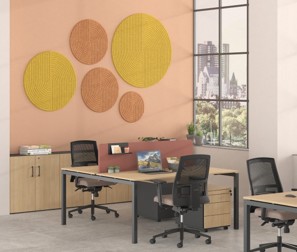 DROMEAS acoustic systems provide optimal sound absorption on the walls and ceilings where they are installed. Made from 100% PET with a thickness of 18mm, they improve room acoustics by absorbing sound waves, controlling reverberation, and reducing annoying noise, especially in spaces where the concentration of people intensifies the problem of sound reflection. At the same time, their contemporary aesthetics, available in a variety of designs and colors, contribute to creating a pleasant and harmonious work environment.