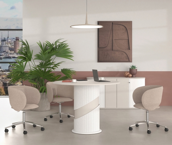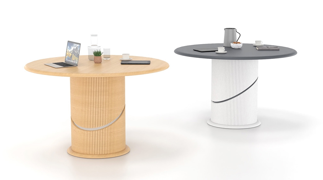 ˃˃ Circular tabletop suitable for collaborative meetings