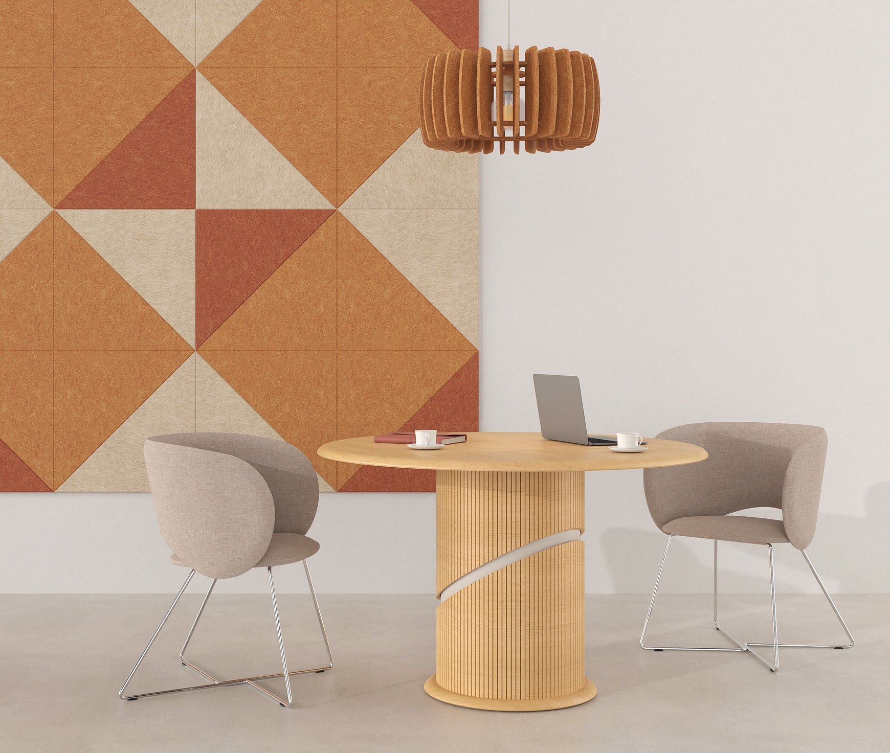 The ANASA round table is designed to elevate the meeting experience, offering comfort and sturdiness paired with refined aesthetics. Its circular form creates a natural focal point for dialogue, while the generously sized surface accommodates the needs of both small and larger groups. The carefully crafted base adds character, giving the piece a distinct identity that makes it stand out in any professional environment.