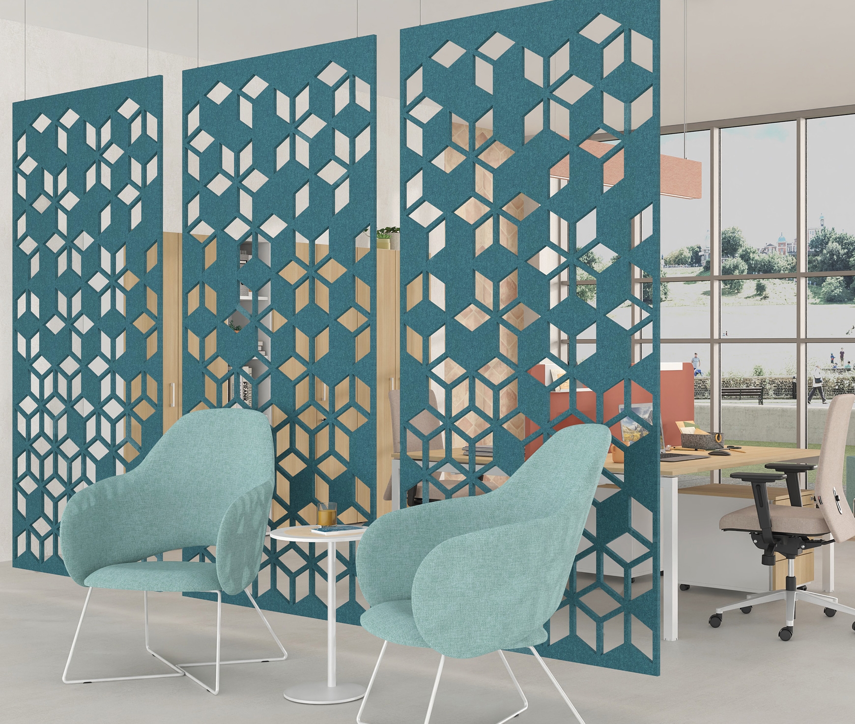 DROMEAS acoustic systems provide optimal sound absorption on the walls and ceilings where they are installed. Made from 100% PET with a thickness of 18mm, they improve room acoustics by absorbing sound waves, controlling reverberation, and reducing annoying noise, especially in spaces where the concentration of people intensifies the problem of sound reflection. At the same time, their contemporary aesthetics, available in a variety of designs and colors, contribute to creating a pleasant and harmonious work environment.