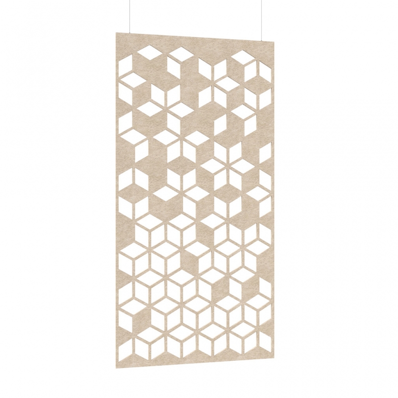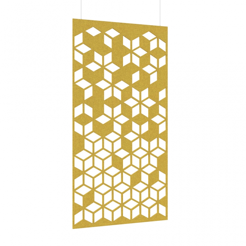 Ceiling-suspended acoustic panels are available in rectangular and square shapes. Also made from 100% PET felt with a thickness of 18mm, they provide high sound absorption and aesthetic balance in the space. Ceiling suspension is achieved via an adjustable-height hanging system, allowing adaptation to the needs of any environment.