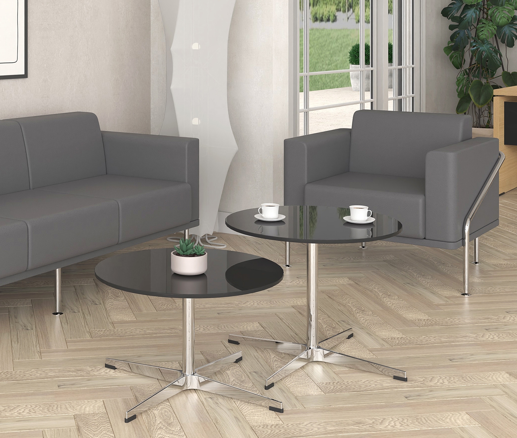 The SLIM series is a modern and innovative proposal for your office. Designed according to European specifications and manufactured following the ecological corporate philosophy, always aiming at the balance between man and the environment. The wide range of materials, colors and dimensions make it easily adaptable to any space. The coffee table consists of the glass surface and the frame. The frame has a cylindrical vertical support made of INOX tube and its base is square polished metal.