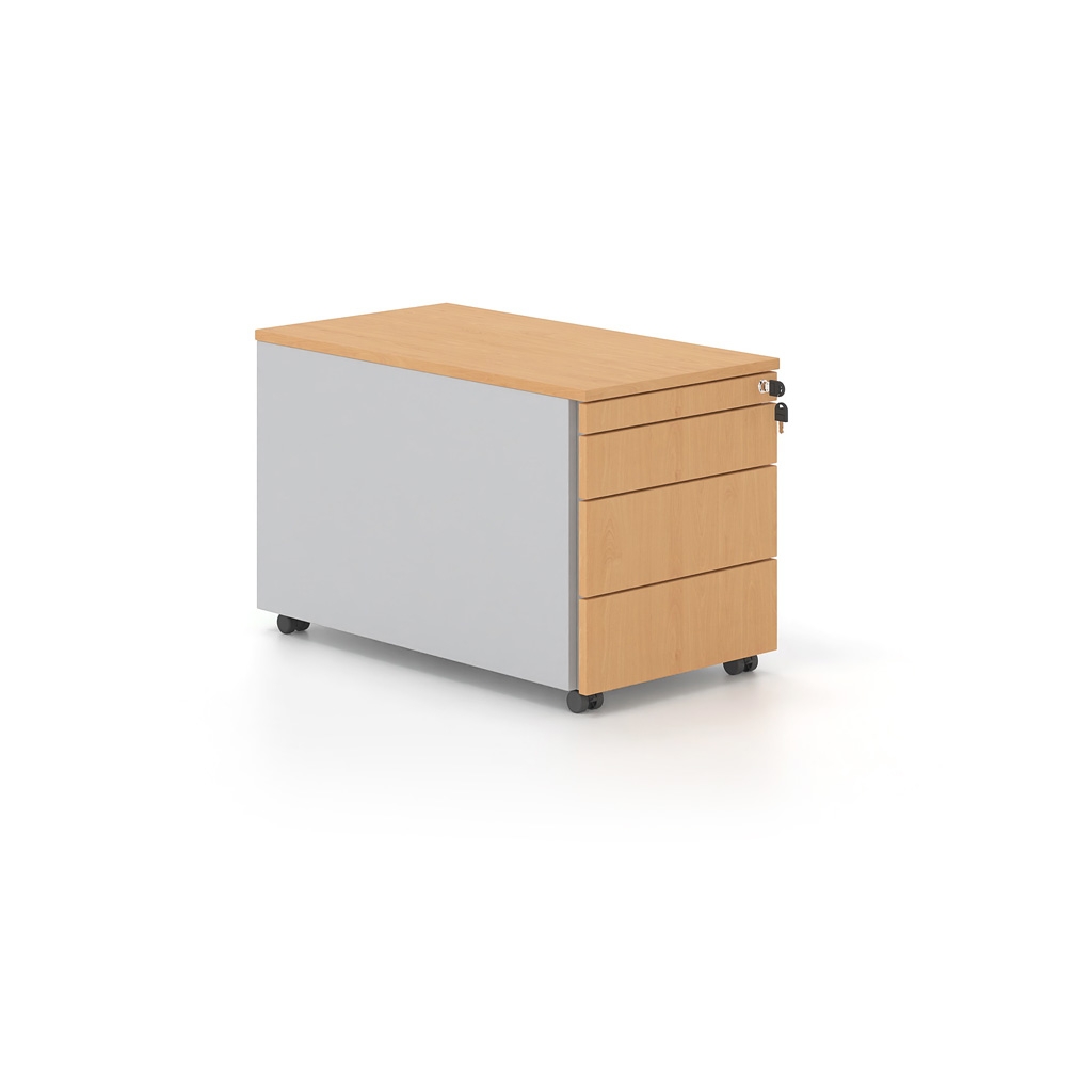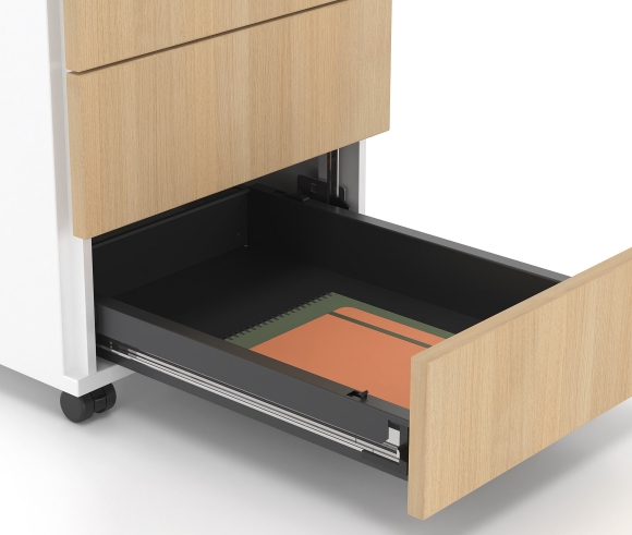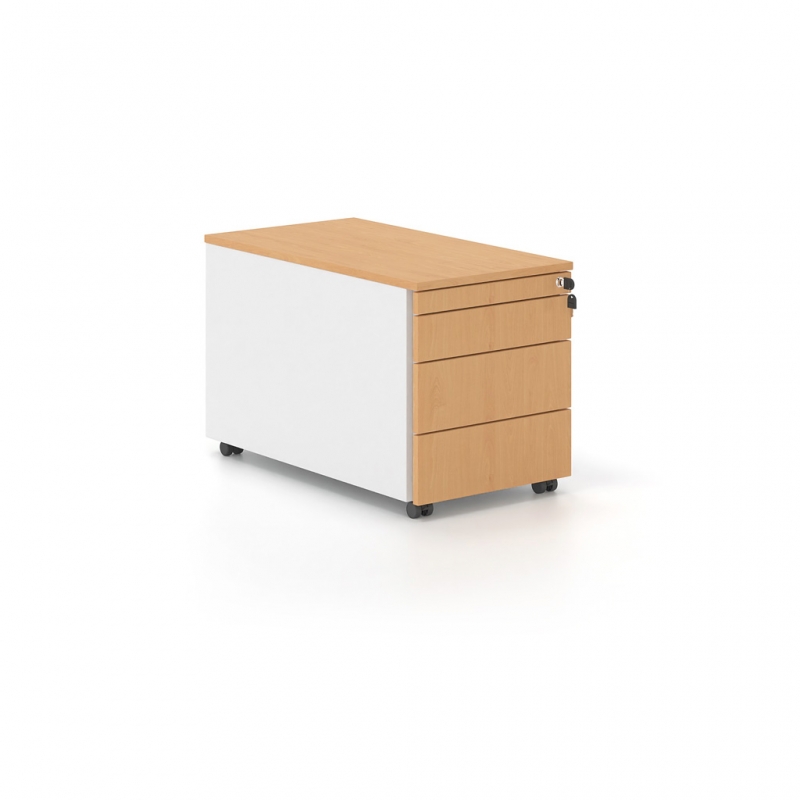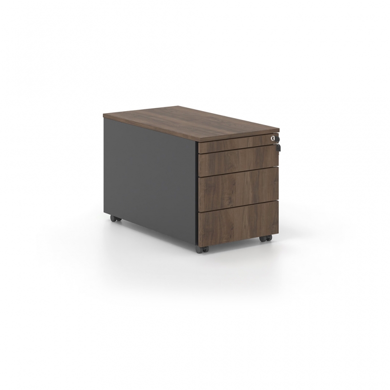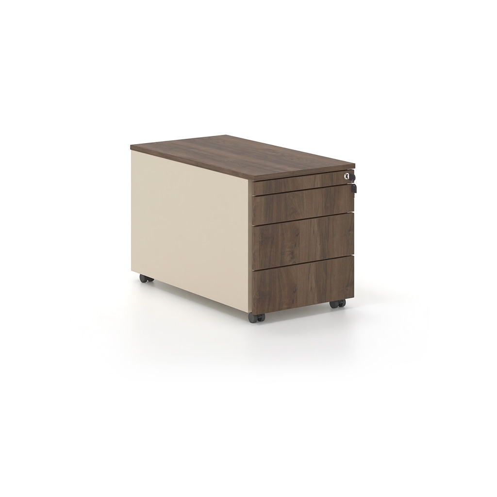 Pedestals made of metal casing, of high quality and aesthetics. They are equipped with a decorative lid and melamine chipboard trays in a wide variety of colors. It is available with a depth of 80 cm. The pedestals are available on castors or fixed with sliders. In the case of castors, there is the option of adding wheels with brakes. They have metal drawers with hidden sliding guides and full (100%) opening, an antitilt system (does not allow opening more than one drawer), as well as a "soft close" closing damping system. All pedestals are equipped with safety locks. At the same time, the drawers have a suitable configuration so that it is possible to add transverse partition walls with a variable position for better organization of the storage space. They are available in a wide variety of colors.