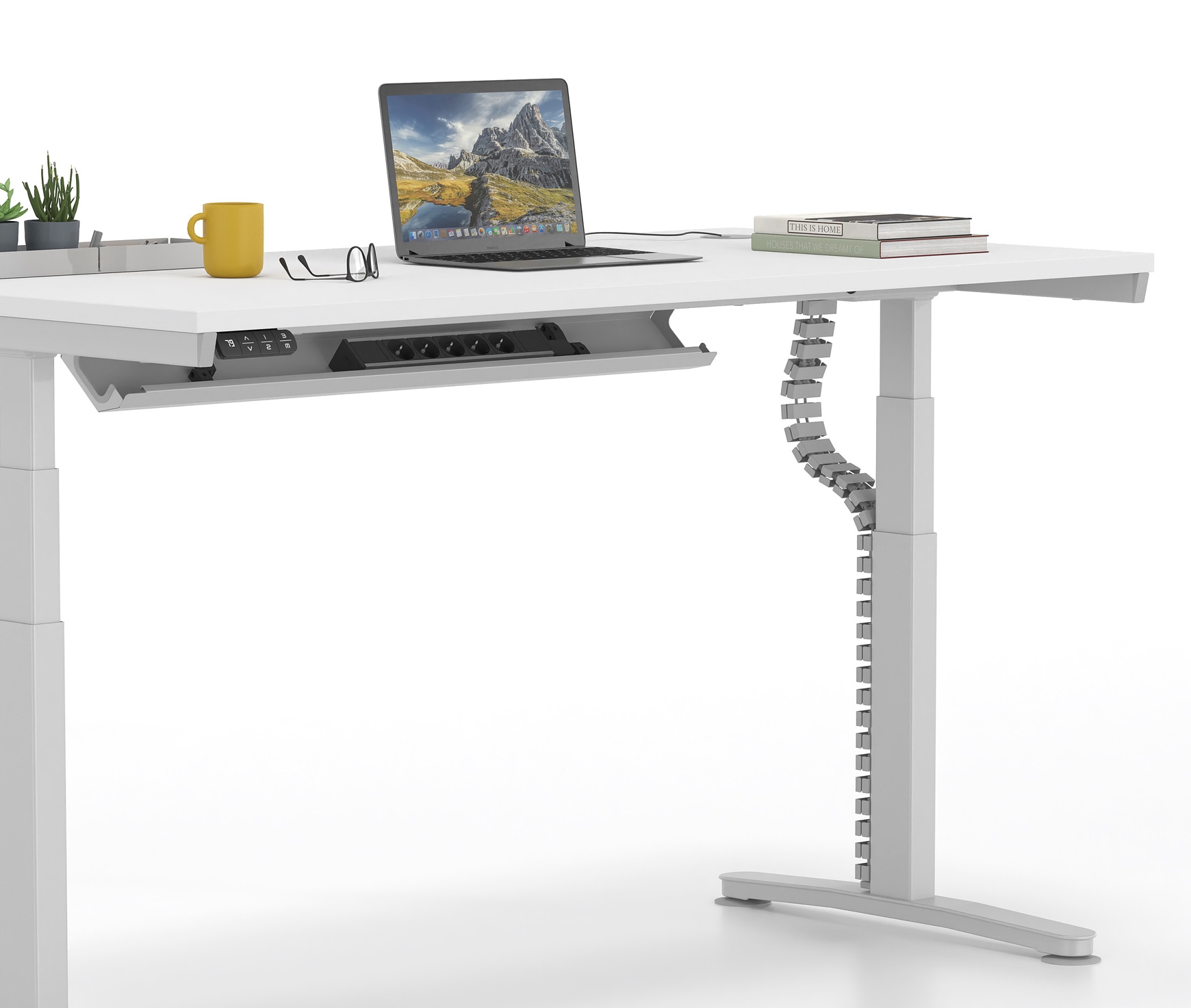 Improve health and well-being during work – studies have shown that being able to switch between standing and sitting positions significantly reduces fatigue, pain and back problems. Like all mechanical systems, the human body obeys physical laws. In the standing position, the load is shared between the ligaments of the vertebrae, in the sitting position the intervertebral discs bear the greatest load.