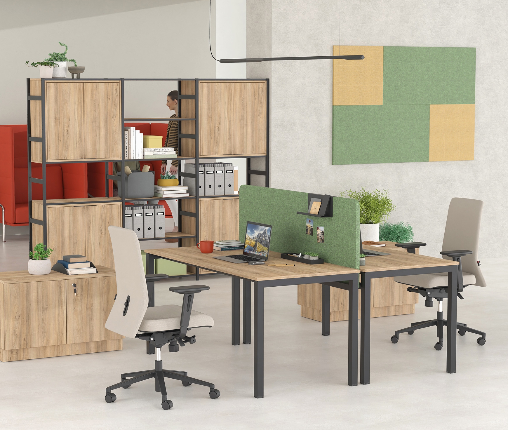 Designed for modern workspaces but equally suited for home use, this desk features a patented modular construction. Its sleek, minimalist design fits seamlessly into any environment, combining style with patented durability. It is available in lengths of 120, 140, 160 and 180 cm, thus easily adapting to any space.
