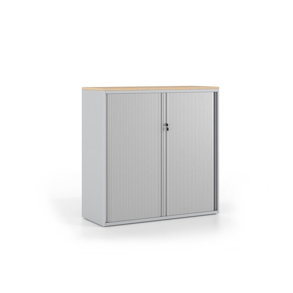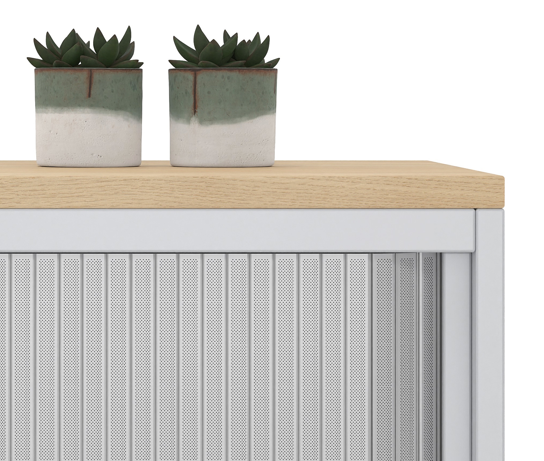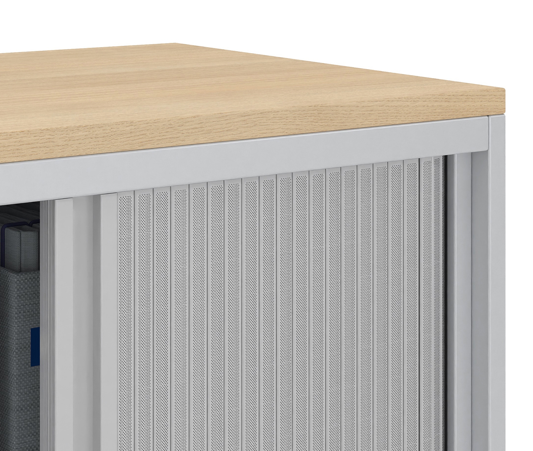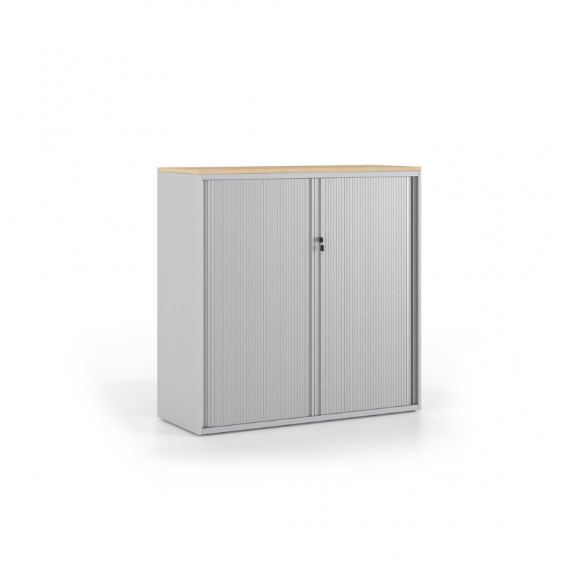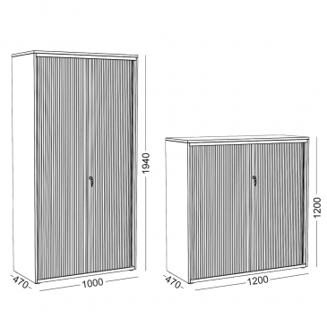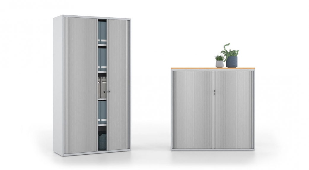 High-quality and aesthetic cabinets with sliding, sound-absorbing tambour doors and a decorative lid made of melamine chipboard. Thanks to the wide range of combinations of dimensions, colors and accessories, they adapt perfectly to any space and make organizing files an easy task. Their construction is robust and suitable for multiple reassembly. All cabinets are equipped with safety locks and height-adjustable shelves.