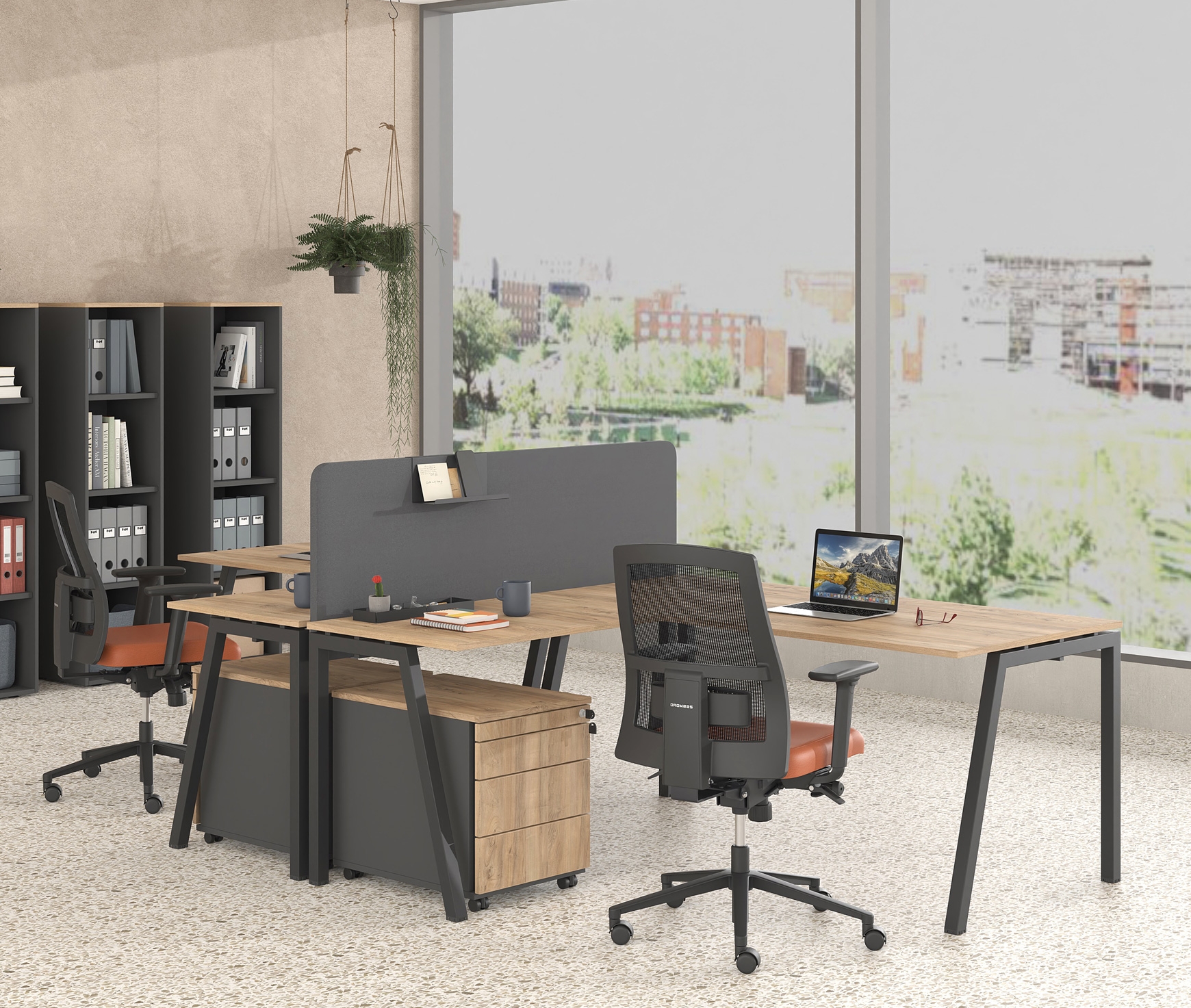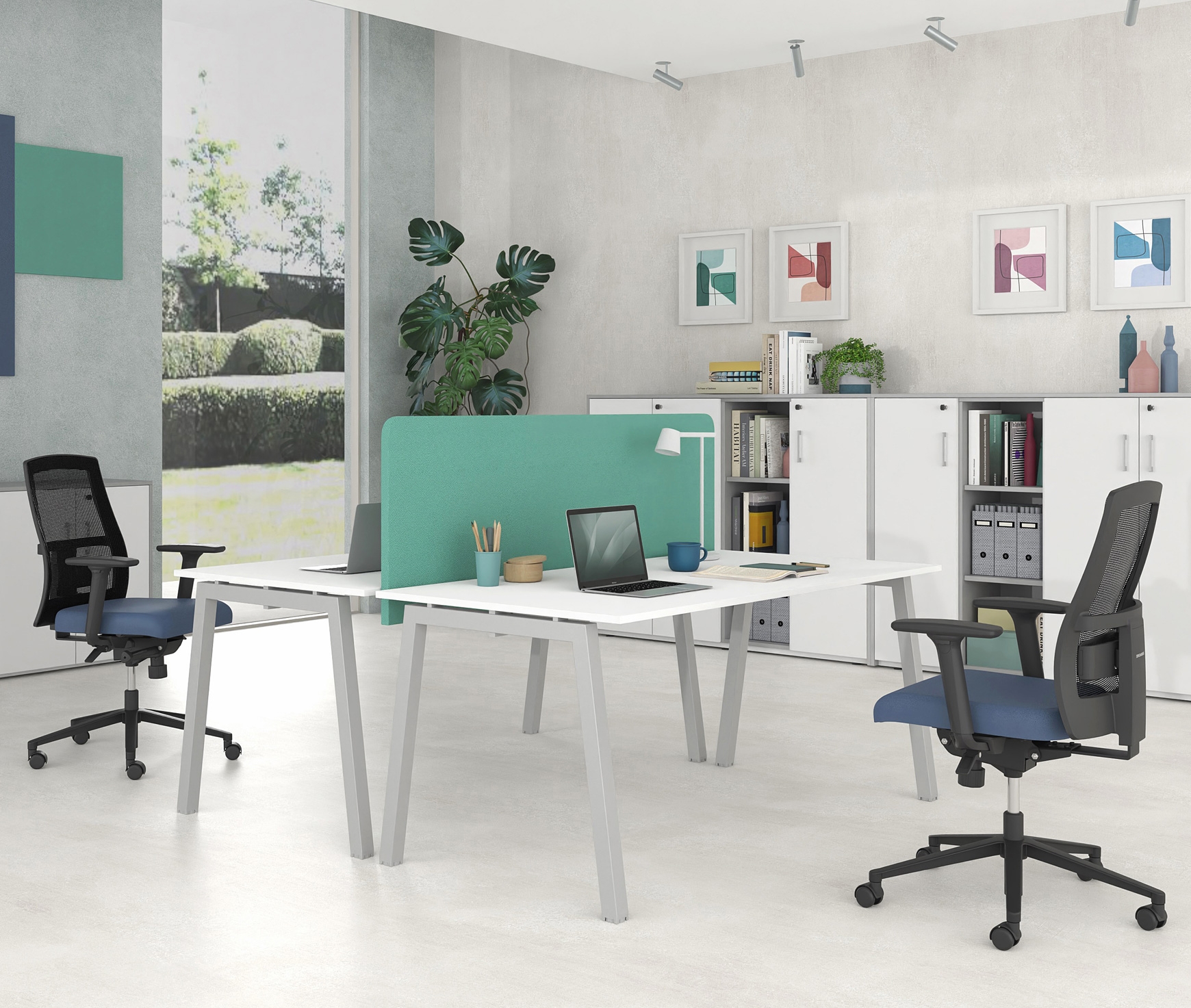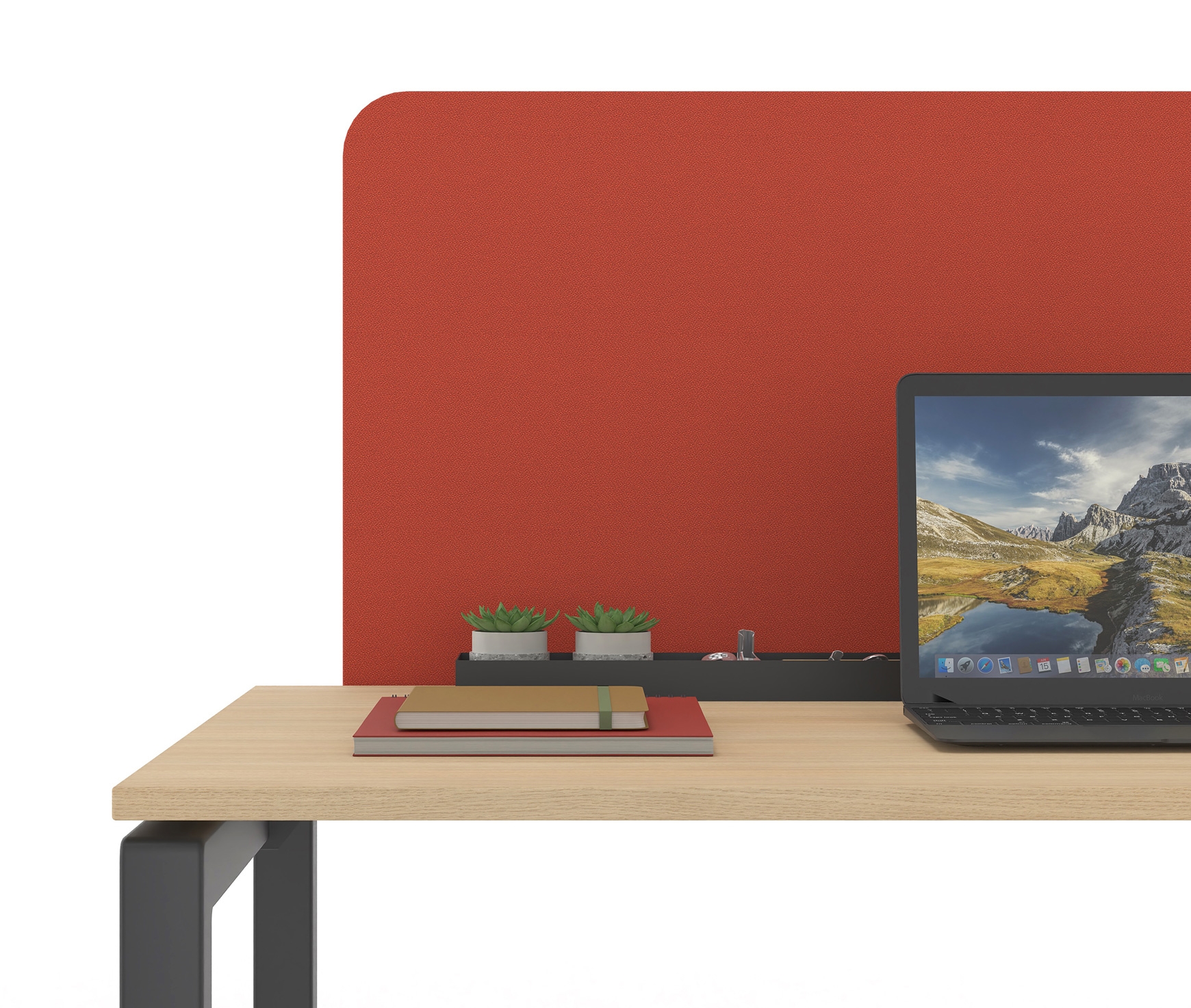 TETRA tabletop partitions designed with an emphasis on aesthetics provide solutions for shaping the space with possibilities of composition of dimensions, materials and colors. The support of the panels on the work surface is easily achieved with the use of special metal parts.