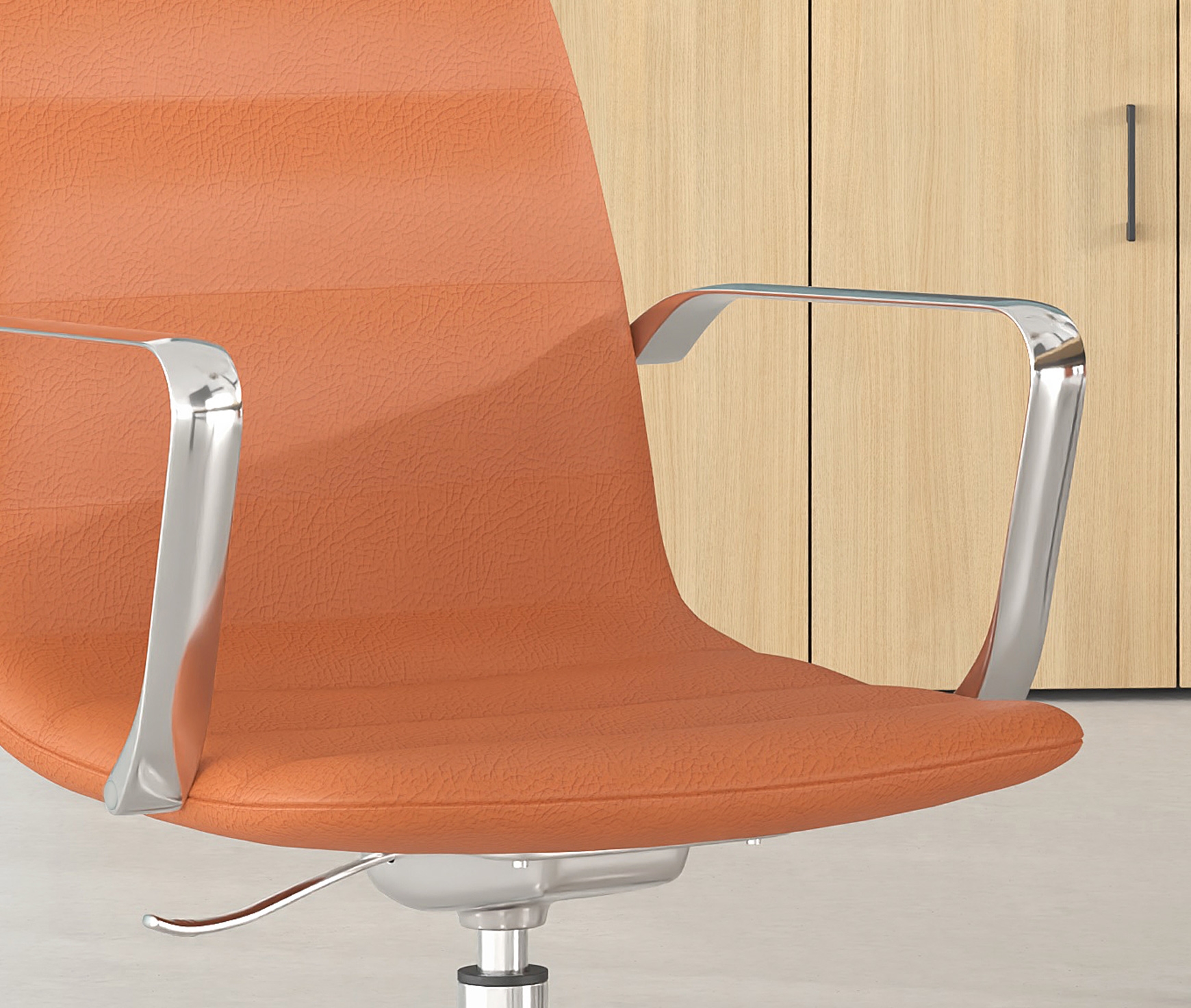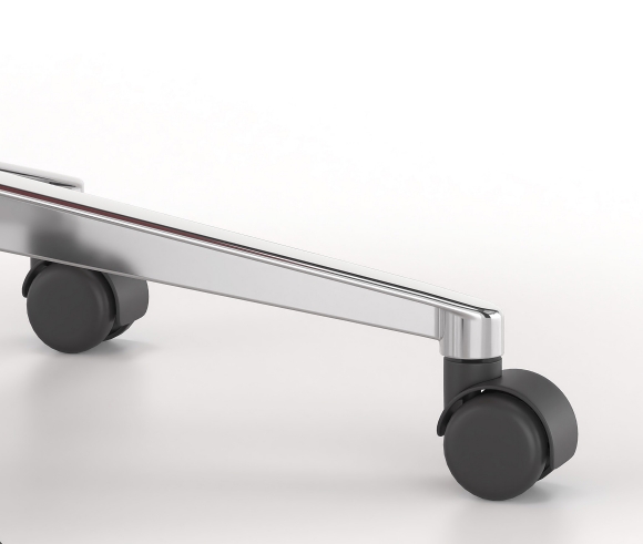An elegant and comfortable visitor’s chair proposal! The single, rotating frame can be upholstered in fabric, leather or leatherette. It has a gas piston height adjustment mechanism, which is activated by a lever located at the bottom of the seat. The mounting brackets are perfectly elegant, made of nickel-plated die-cast metal. It has either twin wheels or non-slip feet depending on the needs of the user.