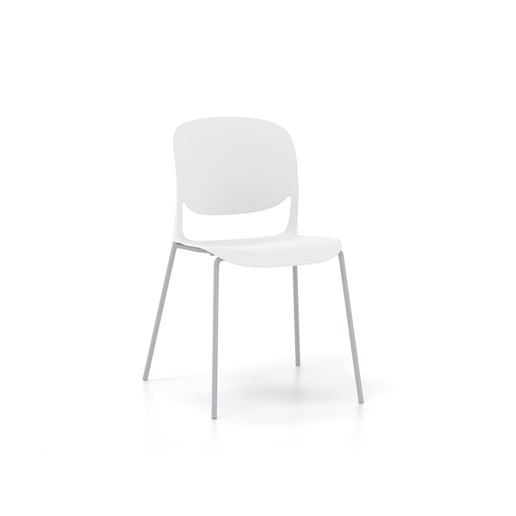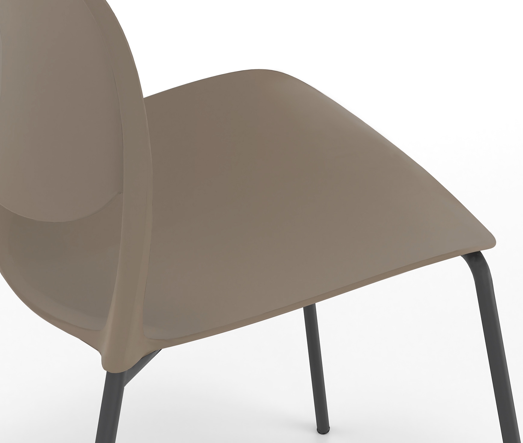 Ergonomically designed, stackable conference chair in earthy colors, ideal for any space! The SPOT chair has a single seat-back made of fiberglass-reinforced thermoplastic material and a painted or chrome-plated metal frame with anti-slip soles. It is stackable, up to six pieces, which makes it ideal for small spaces