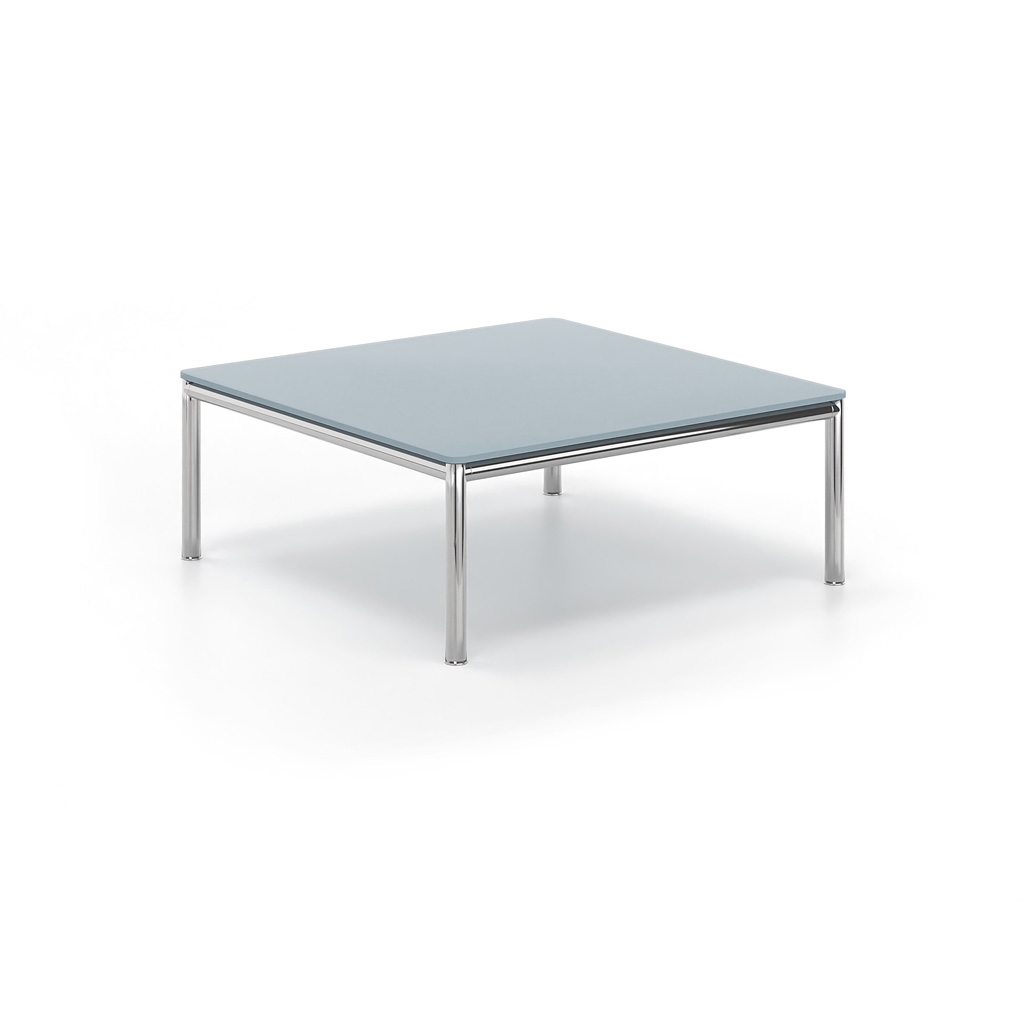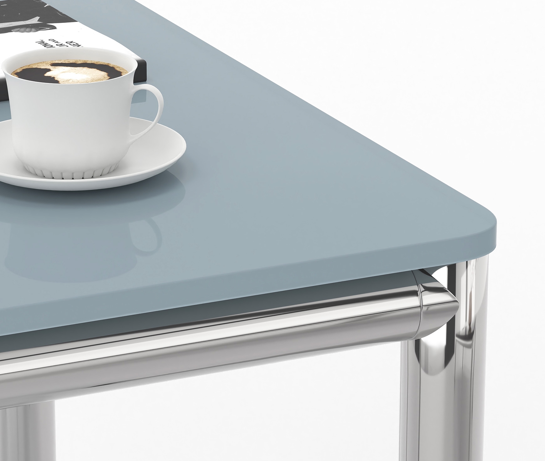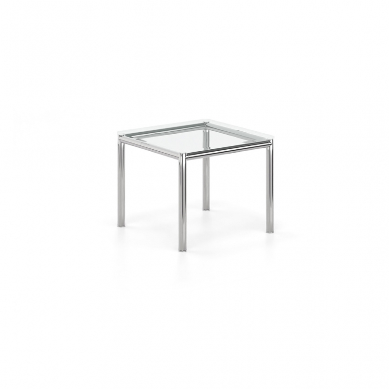 A working environment with an original character creates a feeling of well-being and creativity. The minimal high-tech construction and the elegant presence in the space characterize the coffee table of the SLIM series. The surface is made of extra clear glass and the frame is made of INOX circular section tube. The connection of the individual metal elements is achieved thanks to the die-cast aluminum nodes. The total absence of welds allows for complete assembly and disassembly.
