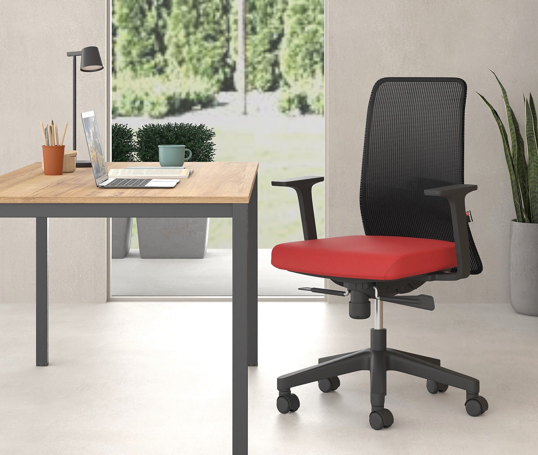 ADJUSTMENTS – The synchronized, smooth and controlled movement of the seat and back, thanks to the antipanic synchro mechanism it has, combined with the possibility of locking in 5 different positions, promotes ergonomics during work