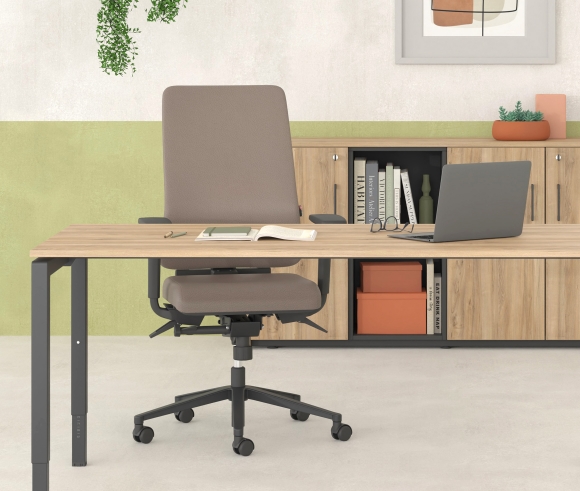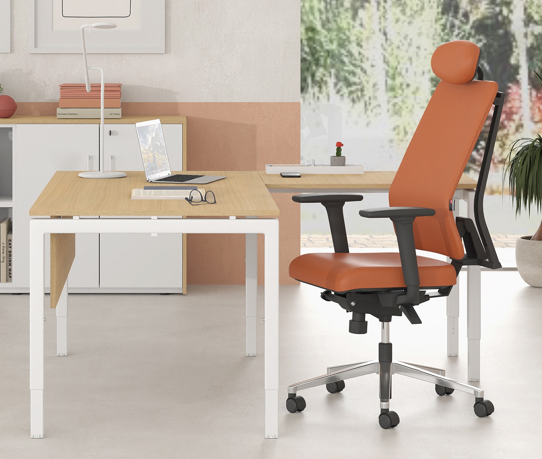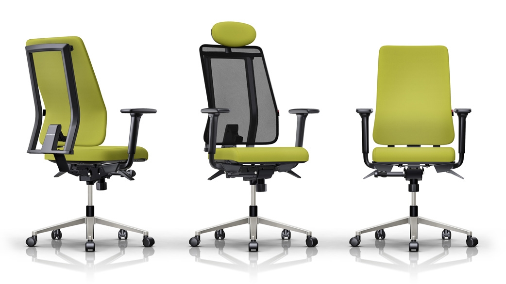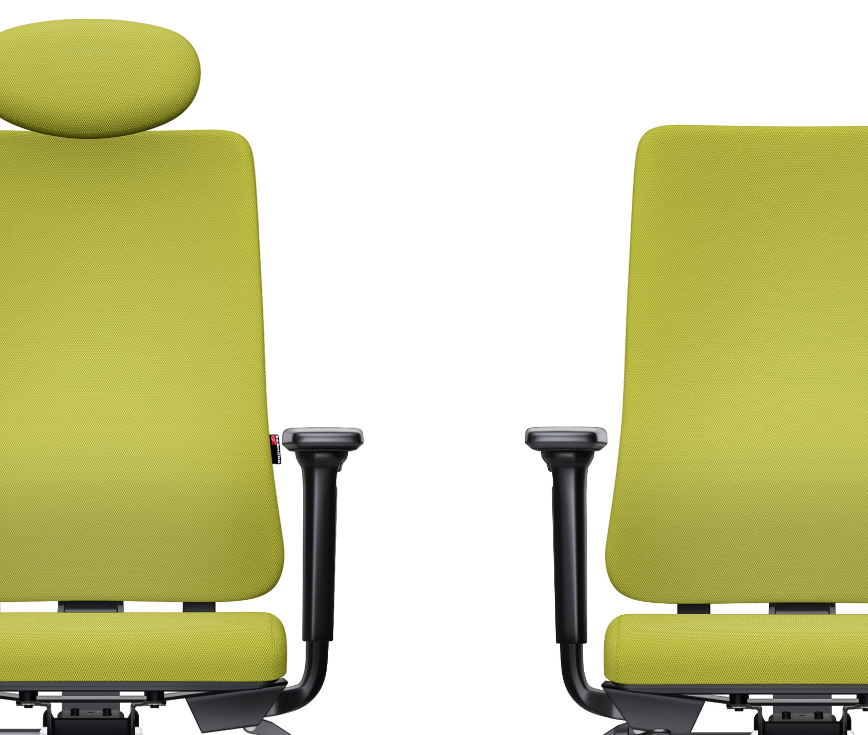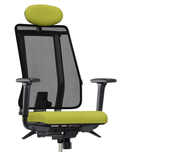 An innovative office chair with its own character! This is revealed by the impressive 3D support back, which follows the natural movement of the user's back, forward - back - right - left, thanks to the innovative support mechanism! Colorful mesh or upholstered backs, ergonomically designed seat cushion, 4D-adjustable armrests and height-adjustable headrest (optional), offer all the advantages that a new, modern, ergonomic workplace requires