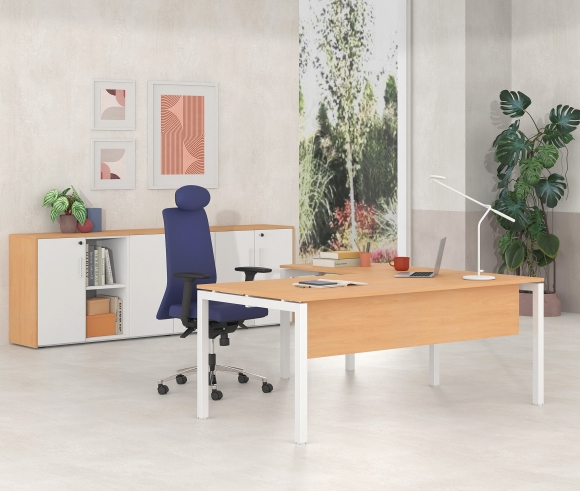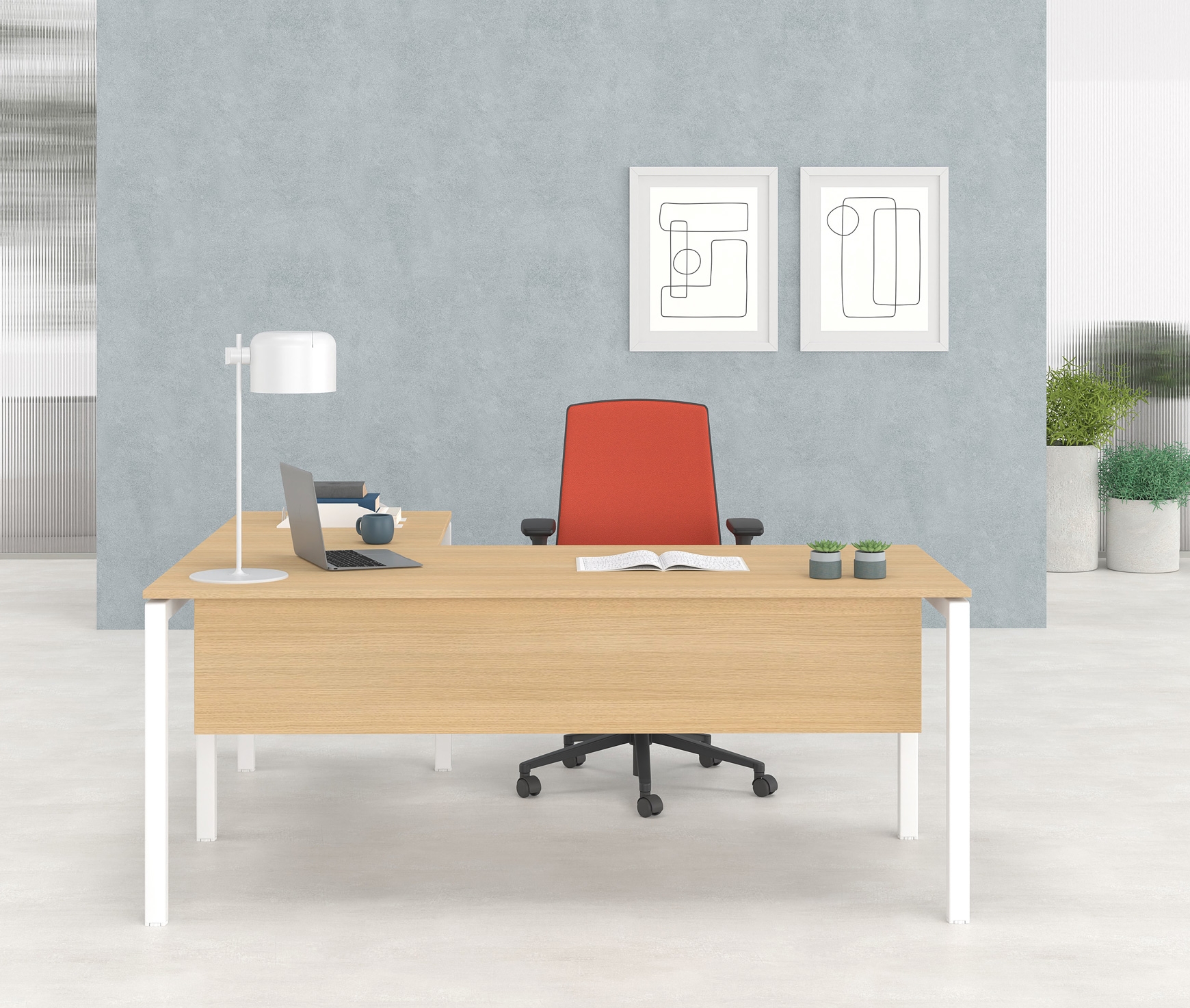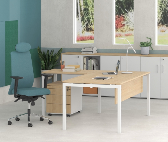 The NEO series is characterized by simplicity and modern design. It is ideal for spaces that require a modern aesthetic approach. It impresses with its simple, clear design expression as well as its high quality. The profile of the series is completed by the optically floating work surface above the metal support frame. With the possibility of configuration in color and size, the NEO desks are ideally adapted to any interior space.