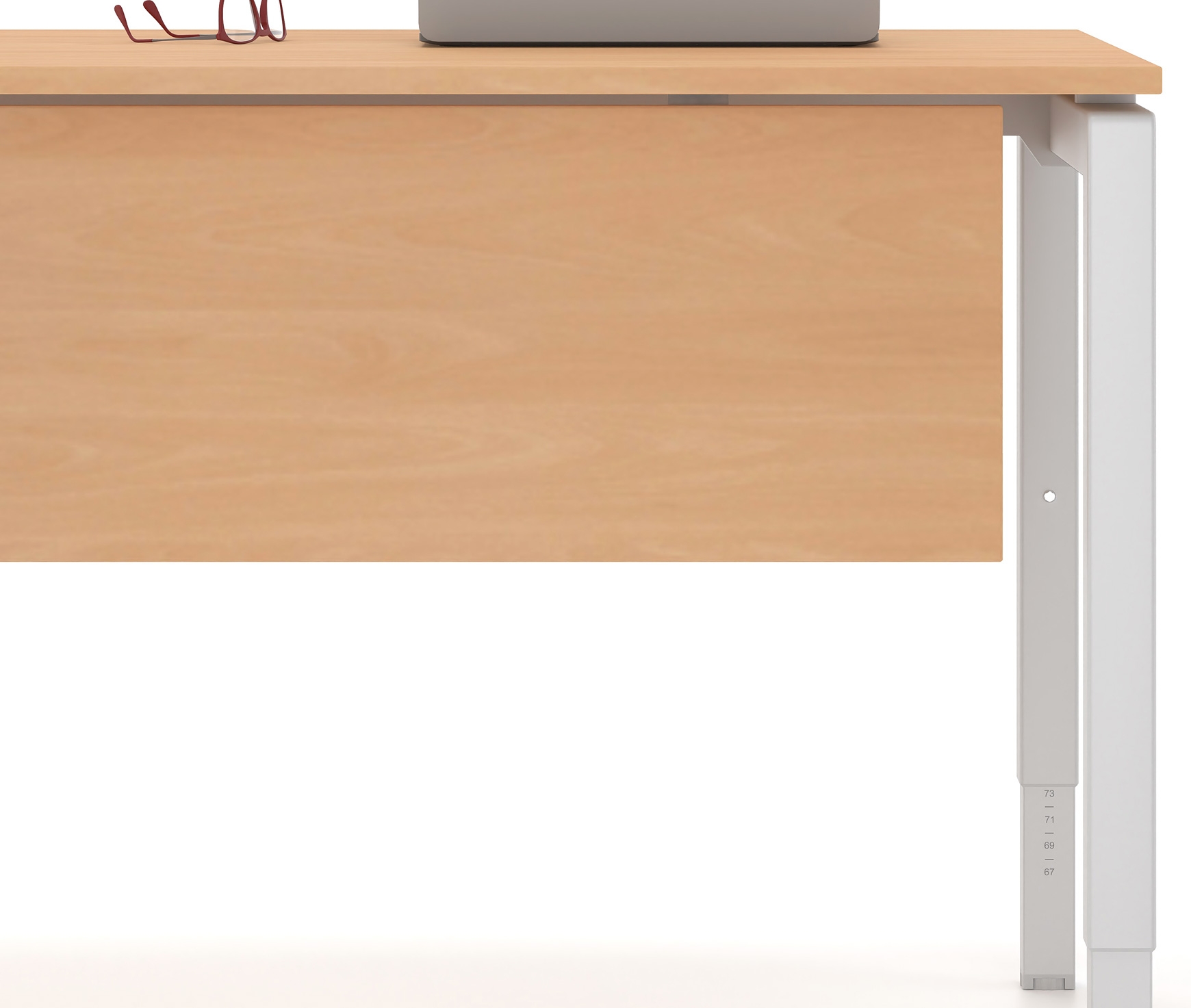 >> Adjustable desk height 650 - 850 mm thanks to the telescopic supports