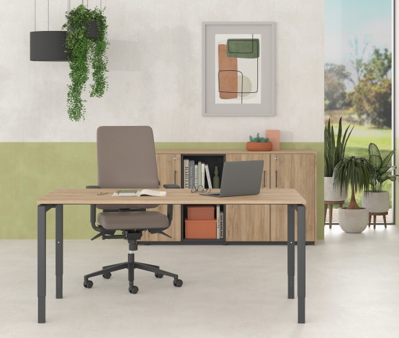 ERGONOMICS - Adjustable desk height 65 - 85 cm thanks to the telescopic supports. Integrated regulators ensure stability on uneven floors
