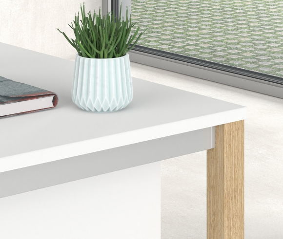 The minimalist design of the TETRA A WOOD desk series allows it to be integrated into both modern and classic work environments. The frame consists of a particularly beautiful mix of materials, metal and wood. Thanks to the wide variety of dimensions, the desks can be integrated both in the office and at home. The "A"-shaped supports and the side traverses are lined with beech wood which is varnished with a transparent varnish. They have a simple and easy assembly method.
