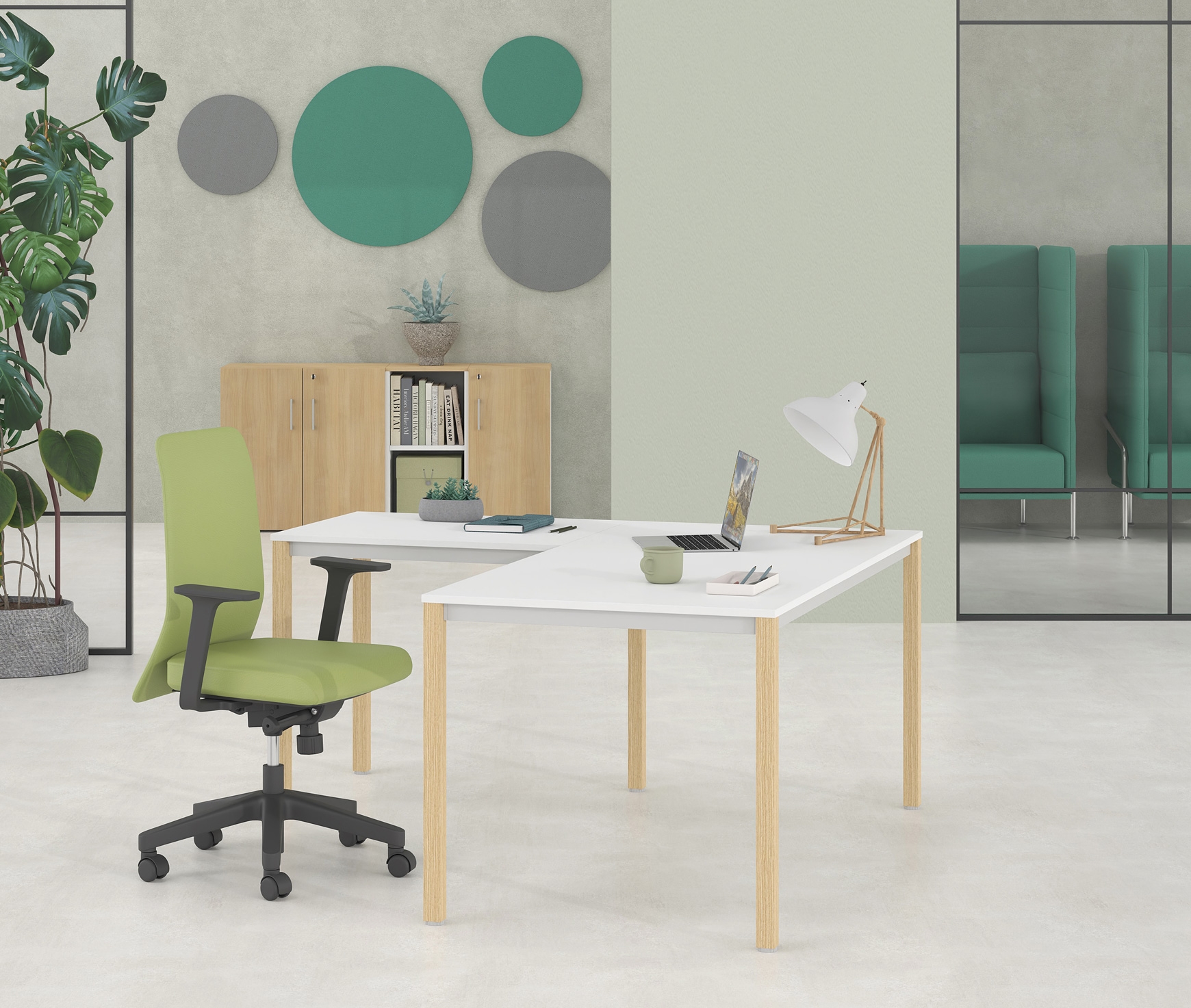 ERGONOMICS - The fixed height of 73cm. it is selectively adapted to the anatomy of the average user. At the same time, on the legs of the office there are regulators for leveling uneven floors