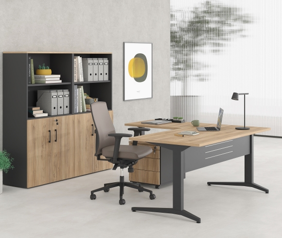 The Altis desk series has been enriched with design solutions and proposals that meet today's needs for flexibility and ergonomics in the modern workplace. The main feature of the Altis series desks is the robust construction and contemporary design, thanks to the asymmetric C-shaped vertical supports.