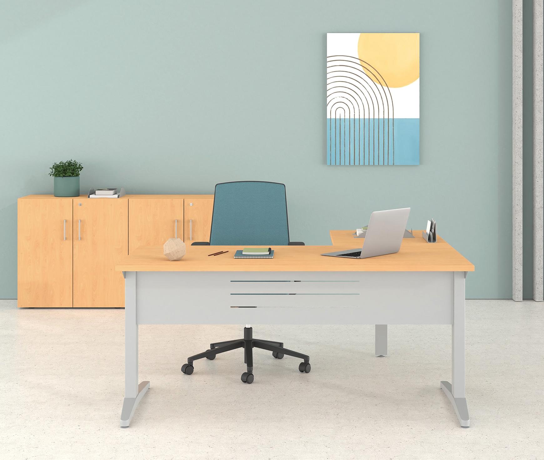 STURDY CONSTRUCTION - Thanks to its asymmetric, metal, C-shaped vertical supports, the Altis desk series stands out for its sturdiness and durability especially after multiple re-assembly