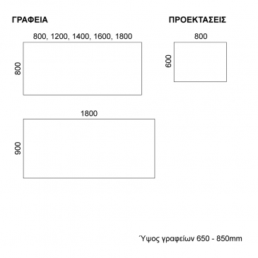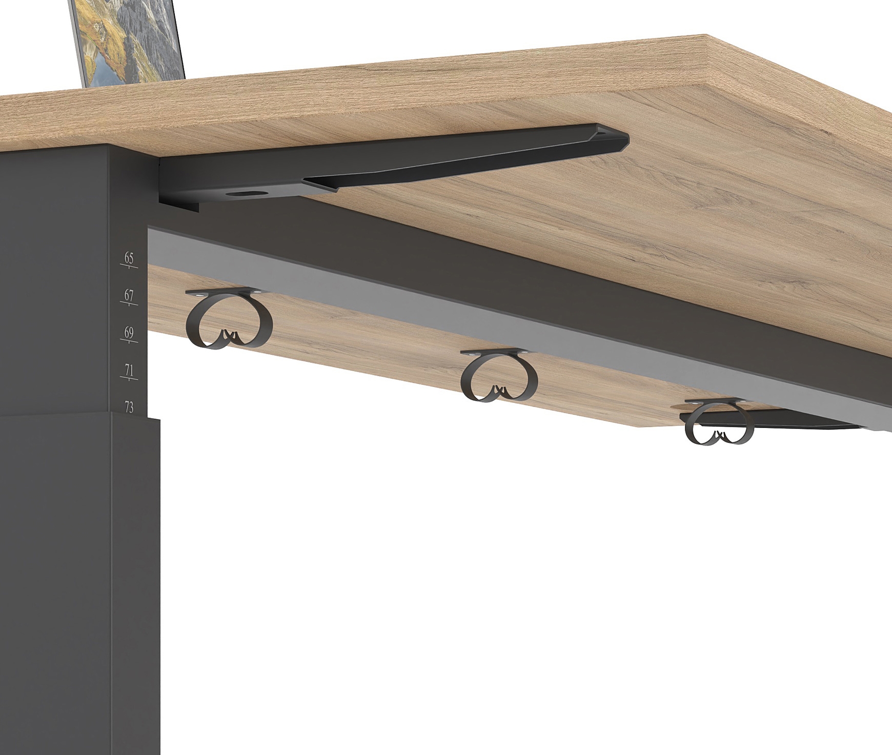 >> Desk height adjustment range 650 - 850 mm with 20 mm step