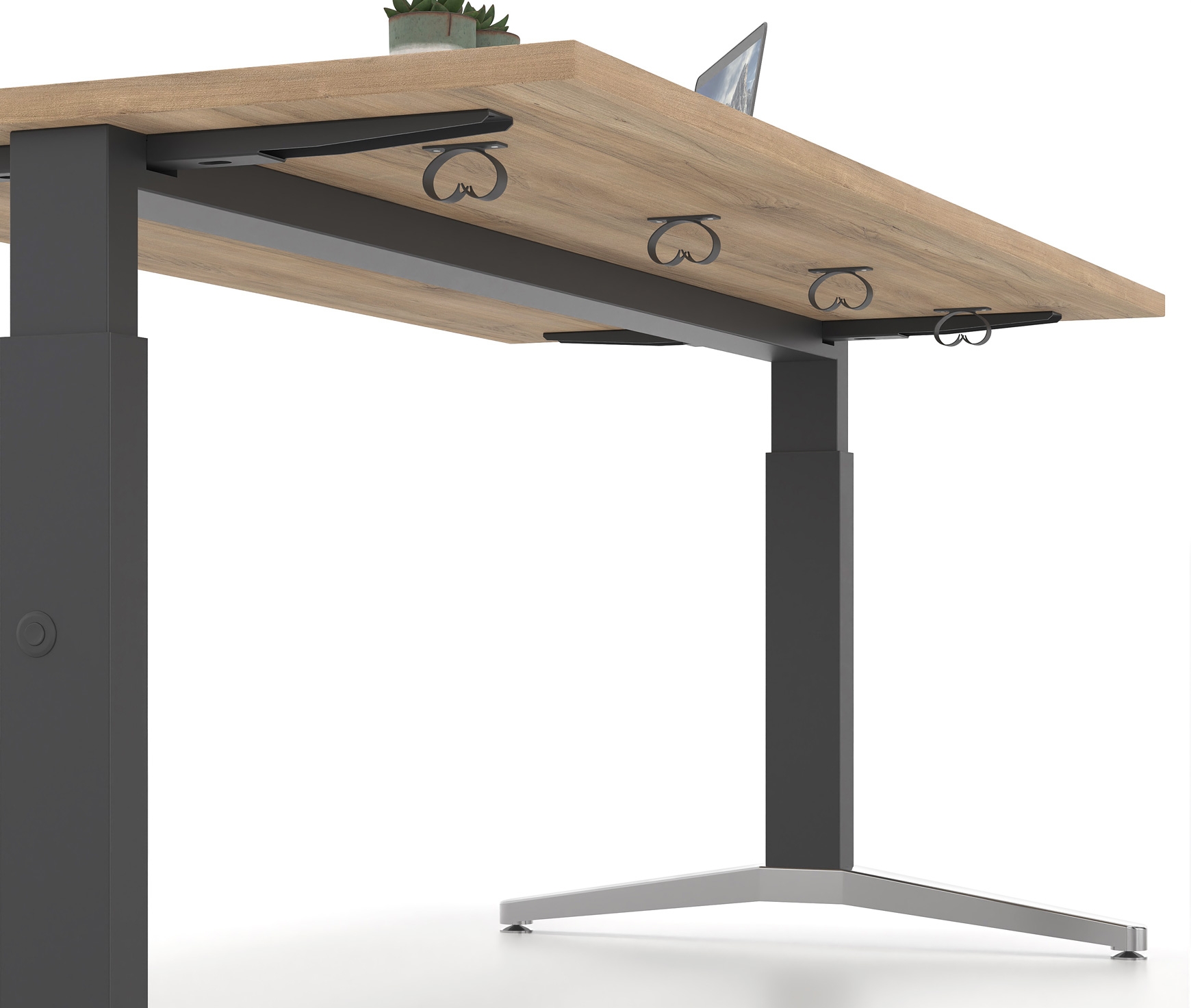 STURDY CONSTRUCTION - Thanks to symmetrical, metal, vertical T-shaped supports, the ALMA desk series stands out for its sturdiness and durability especially after multiple re-assembly